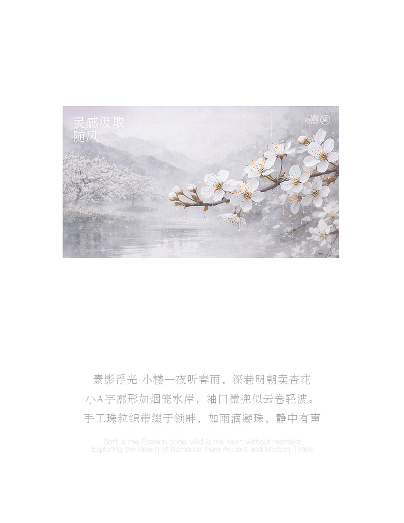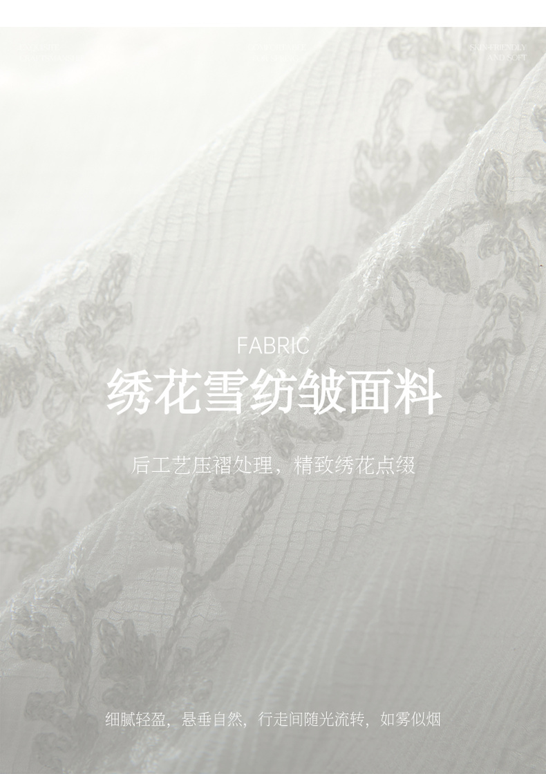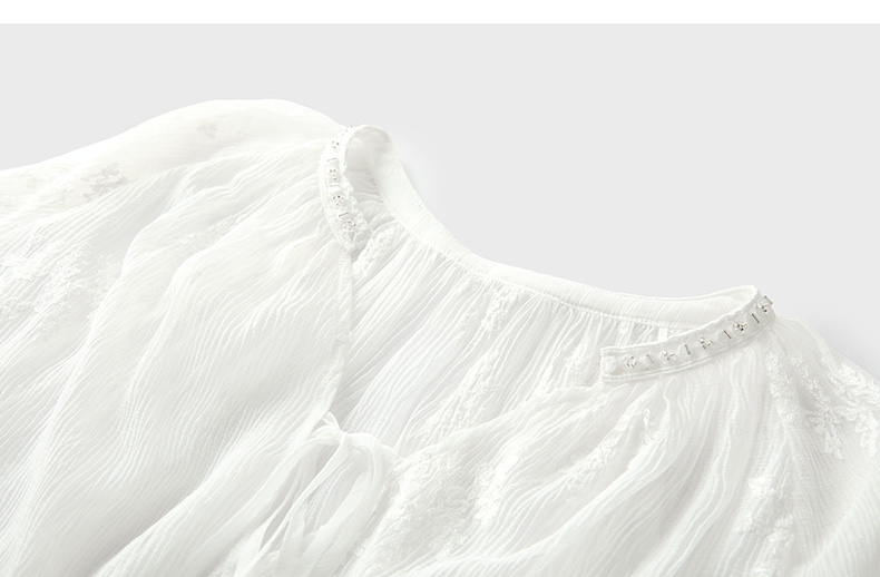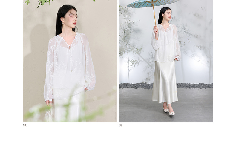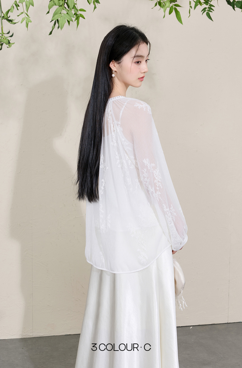 三彩【素影浮光】2026春季新款中式绣花V领衬衣小衫长袖宽松C