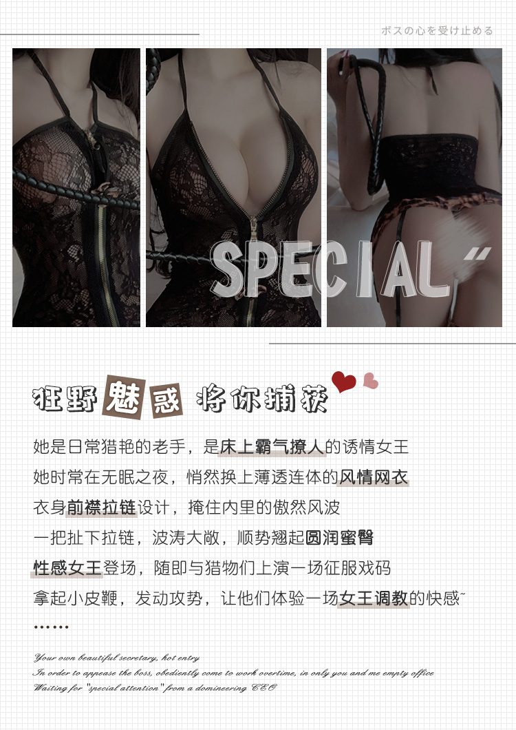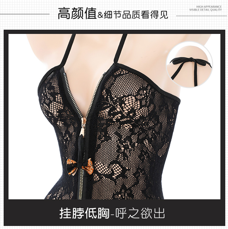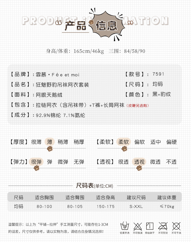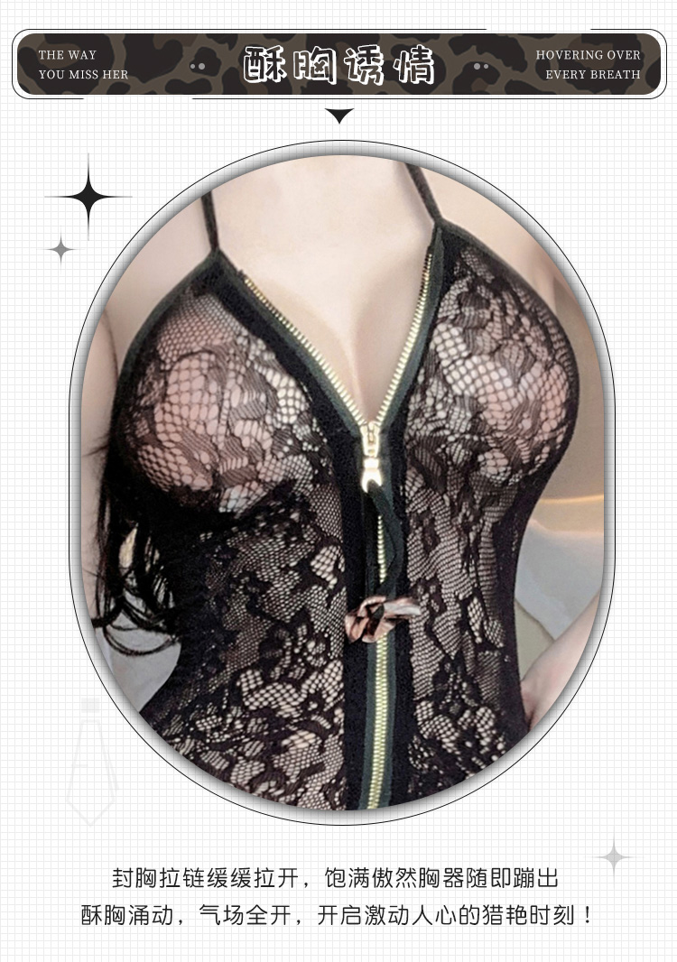 霏慕性感豹纹吊带网袜制服一体网衣7591
