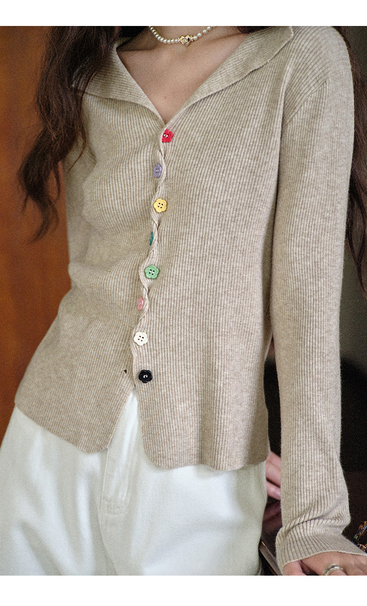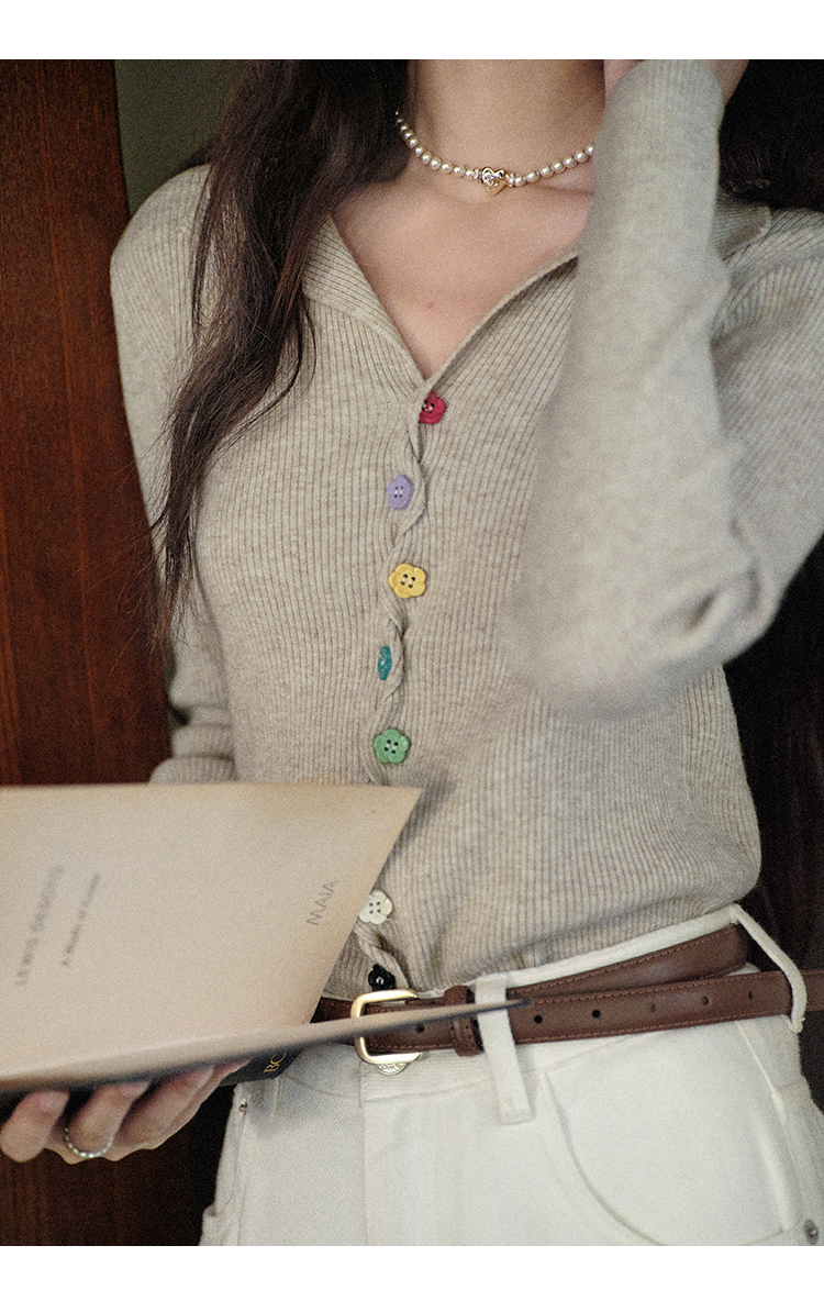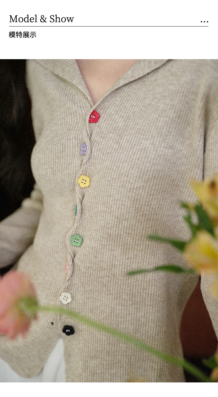 鹿向南「四季秋语」燕麦色修身针织衫女秋新款设计感长袖开衫上衣