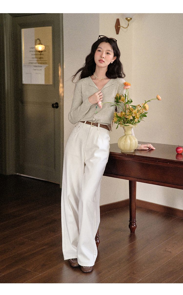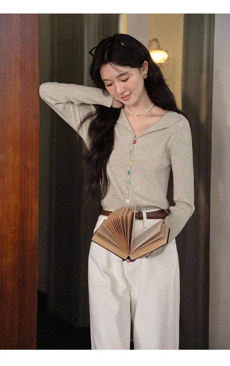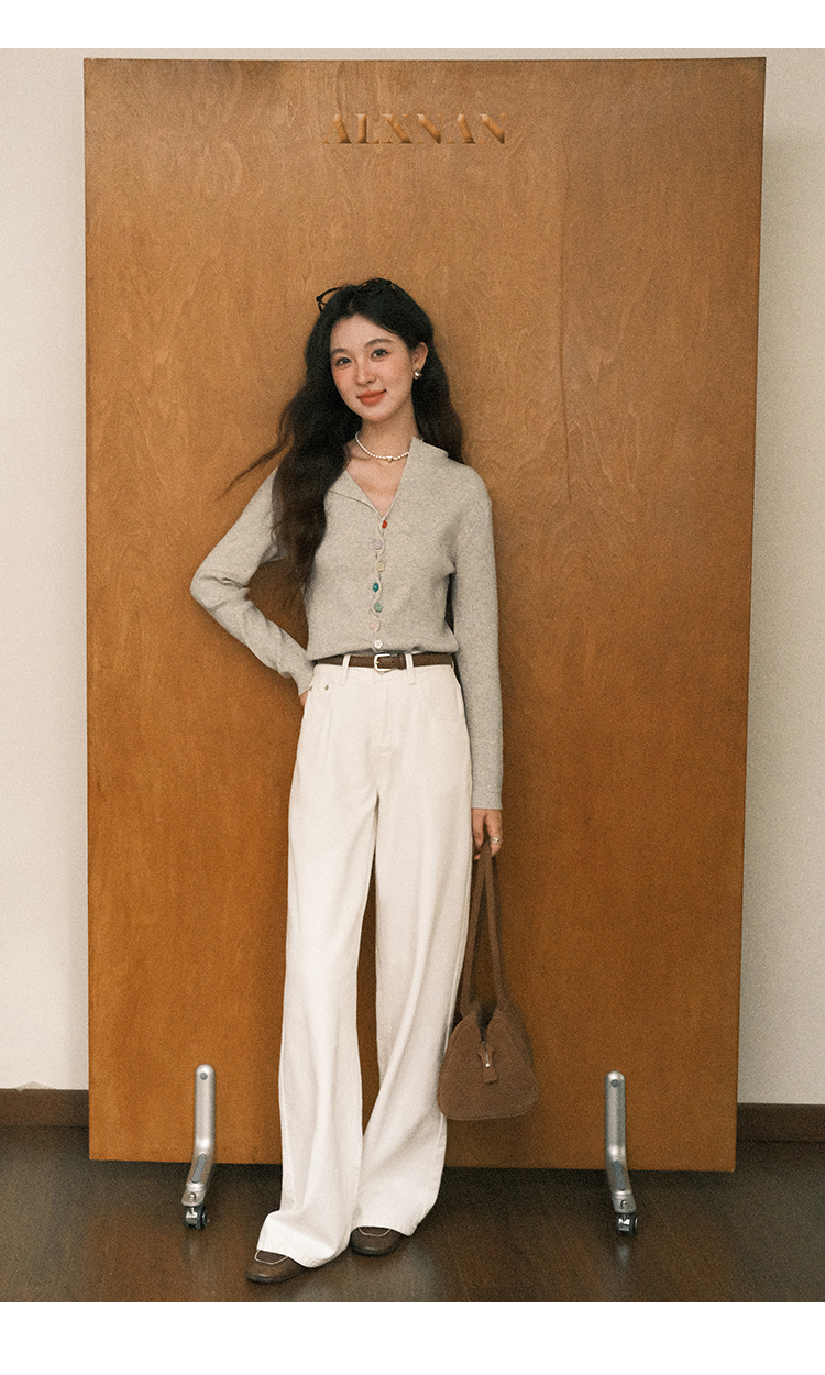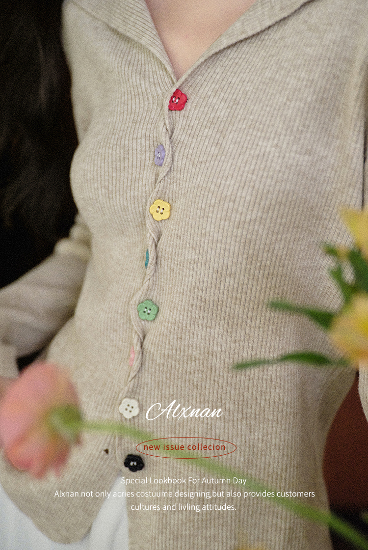 鹿向南「四季秋语」燕麦色修身针织衫女秋新款设计感长袖开衫上衣