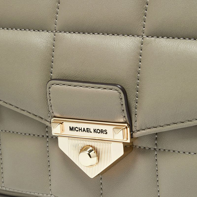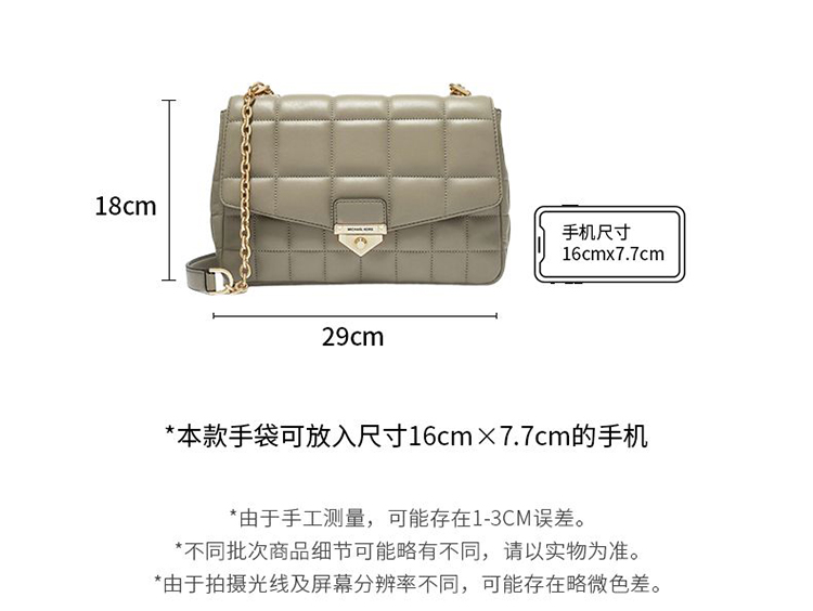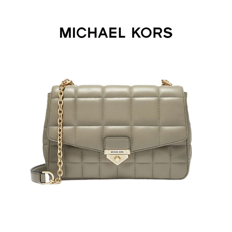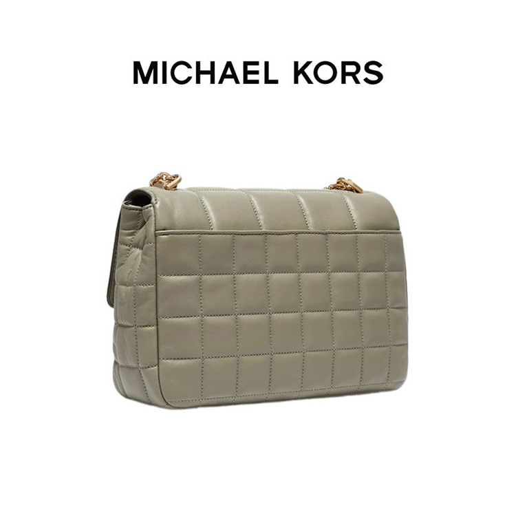 【品牌】 MK Soho 超大号格纹皮质金属链条单肩斜挎包浅军绿色