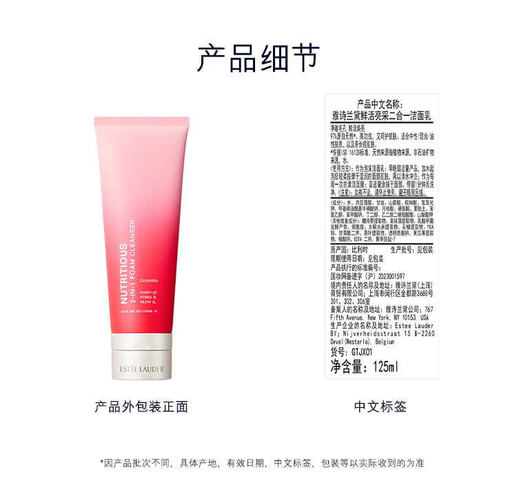 雅诗兰黛鲜活亮彩红石榴二合一洁面乳125ml/支【专柜】(非质量问题不退换)