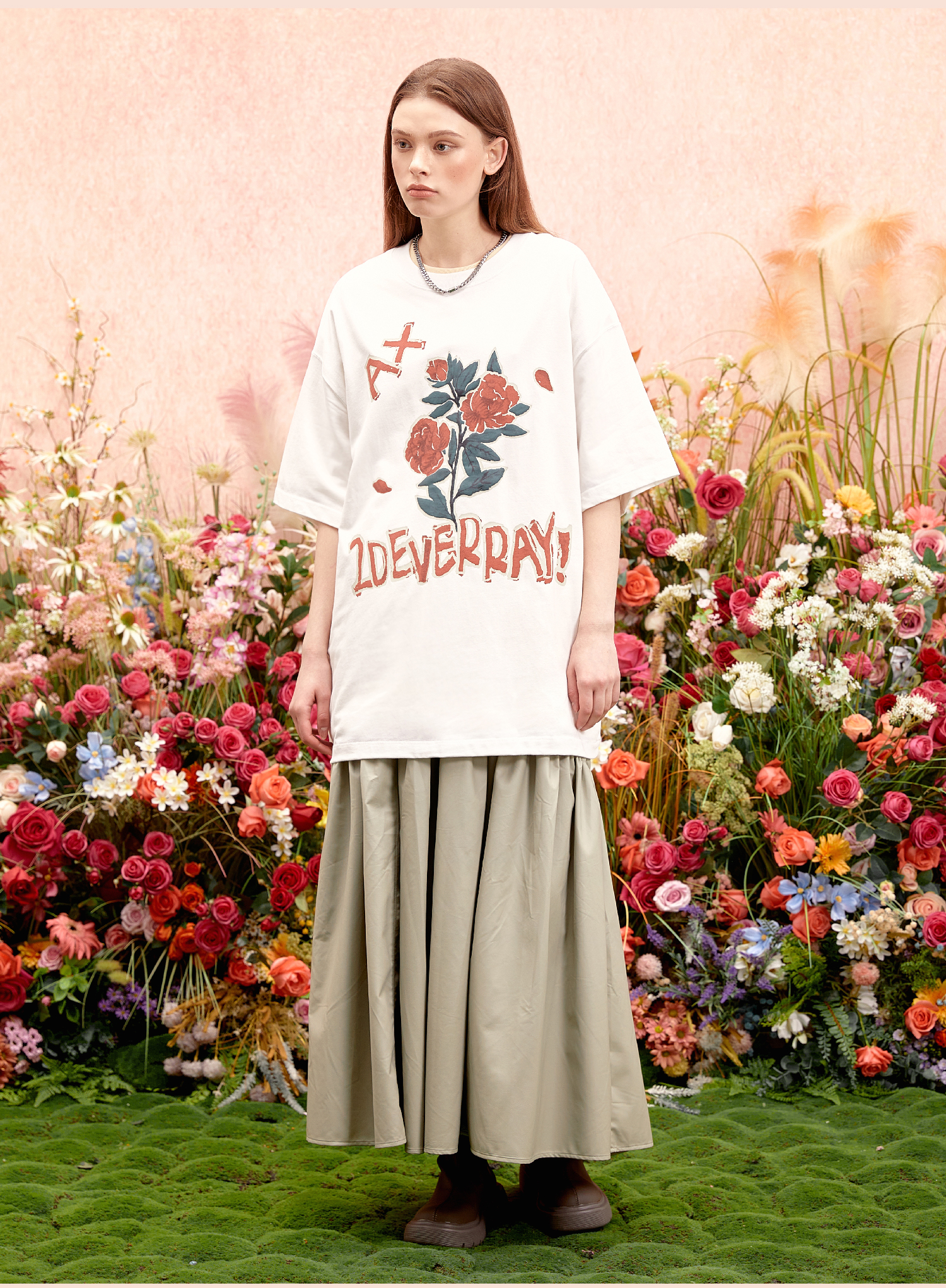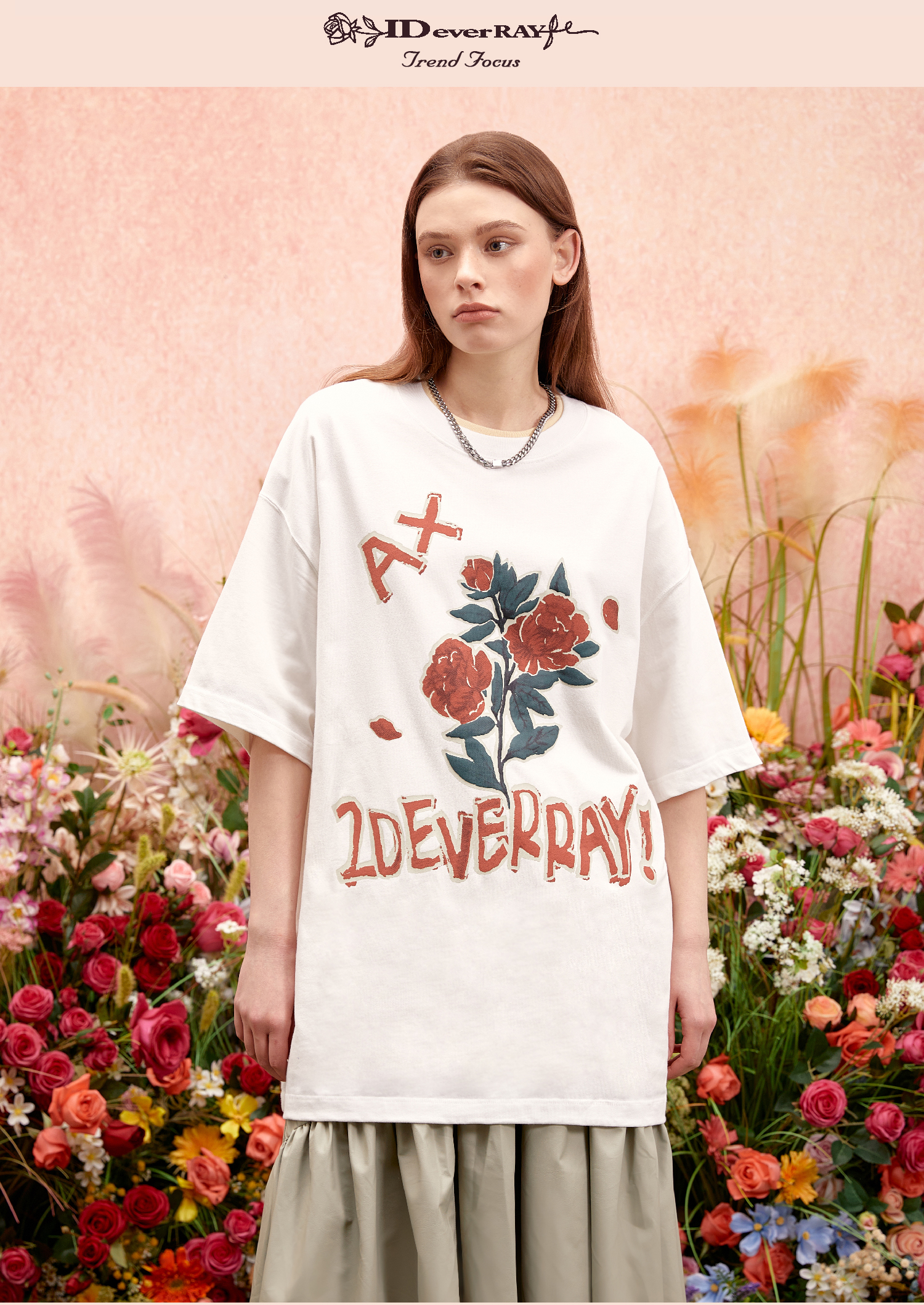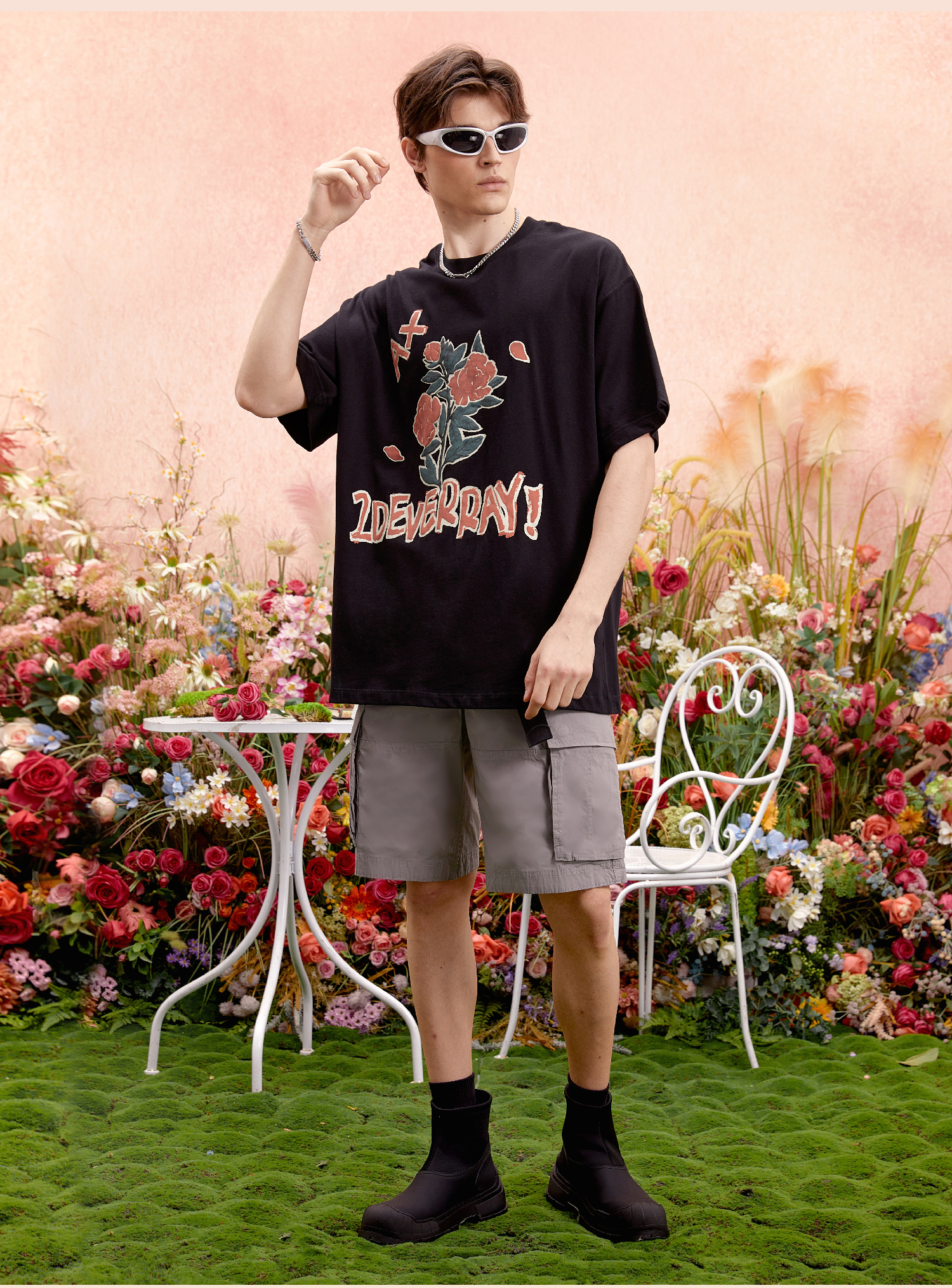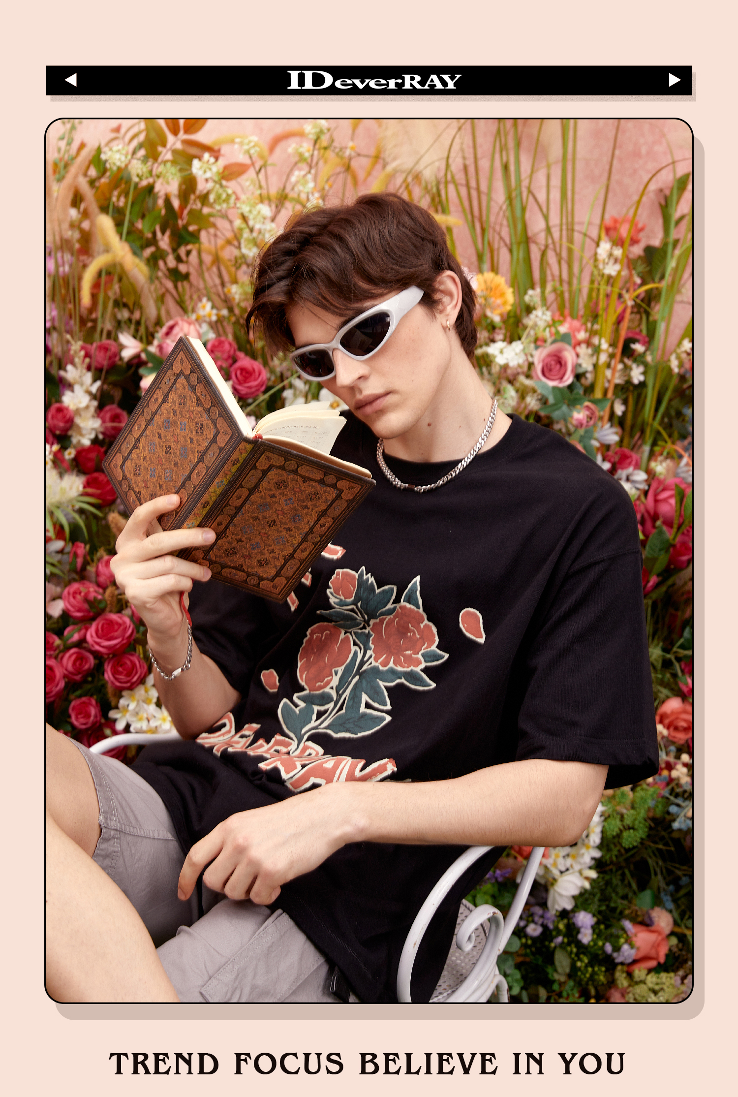 IDEVERRAY品牌夏季美式复古玫瑰花瓣印花短袖宽松休闲情侣衫T恤男21MSL-TM662