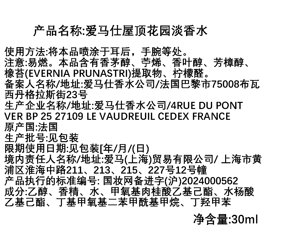 Hermes爱马仕 蓝色橘彩星光/蓝彩星光香水