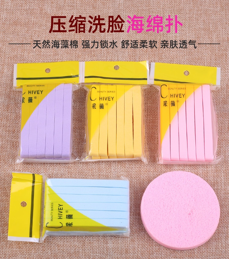 彩薇压缩洗脸洁面扑 强力锁水舒适柔软亲肤透气 黄色一包装12枚