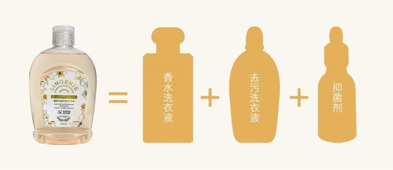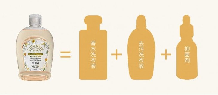 用这个内衣专用清洗液,能同时体验到了香水洗衣液、去污洗衣液和抑菌剂三种产品的效果!