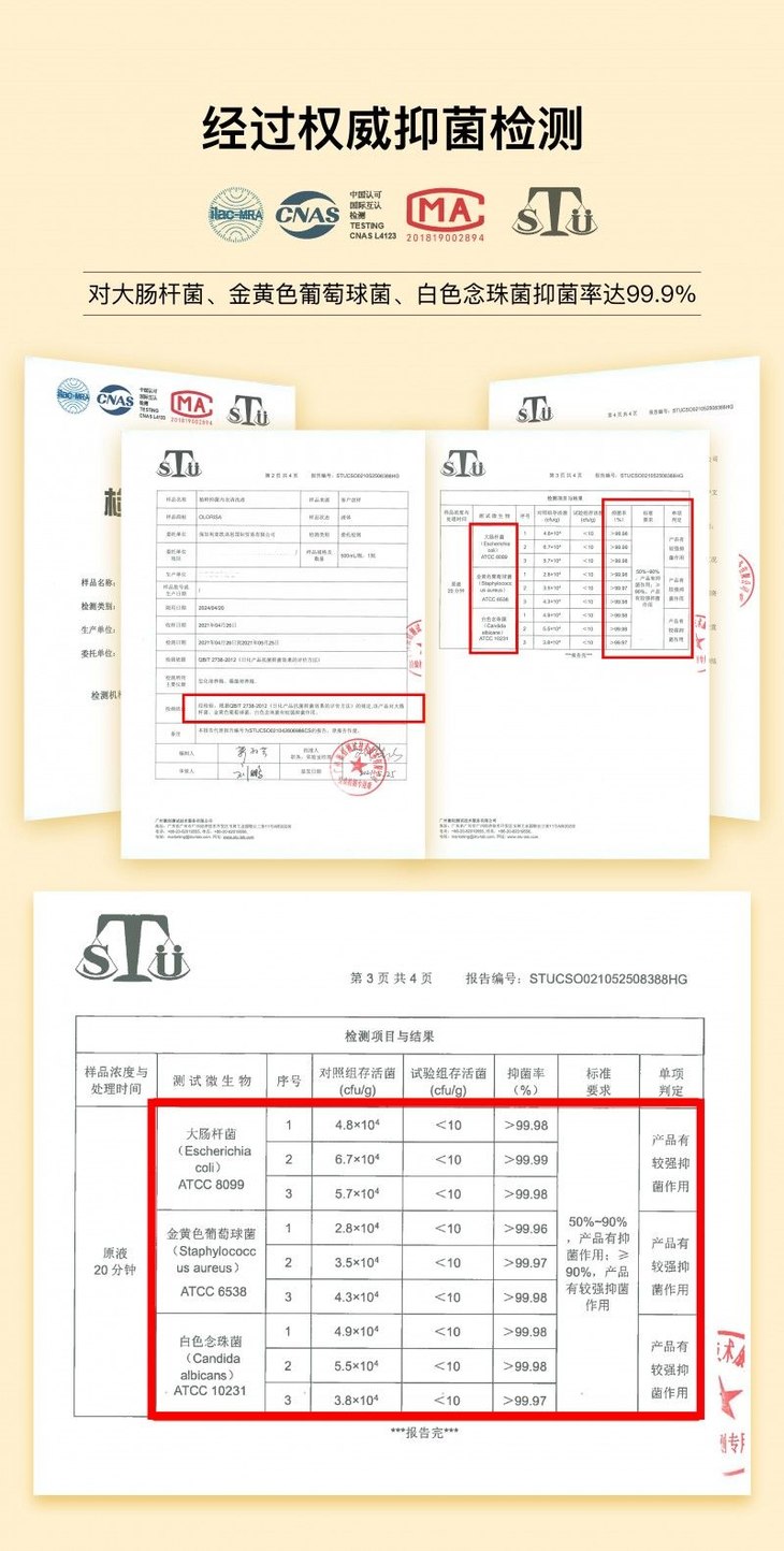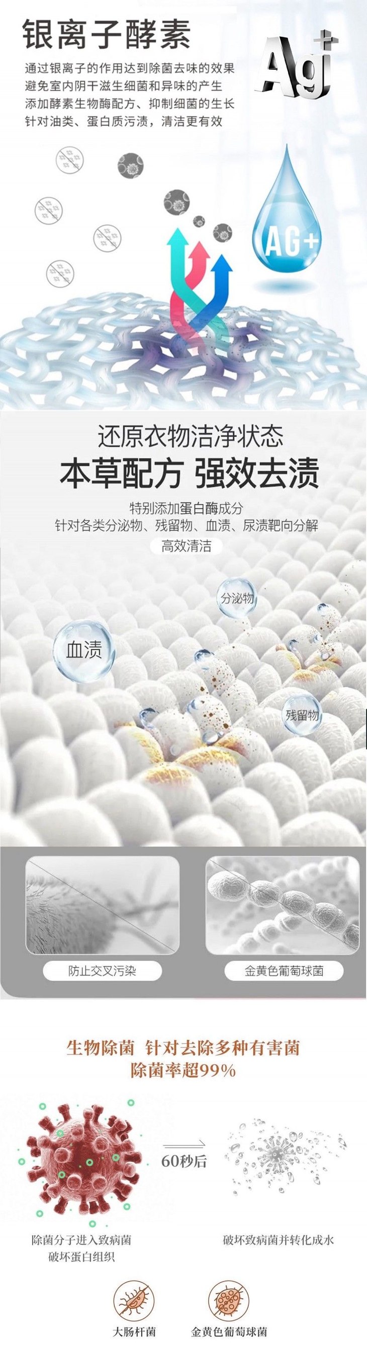 它能同时达到深层去污,杀菌抑菌,自带柔顺和香味的功能! 99.9%超高抑菌率超放心!