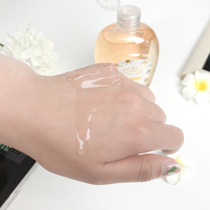 它属于比较稀的液态质地,倒出来是淡黄色的液体,看上去非常清透。