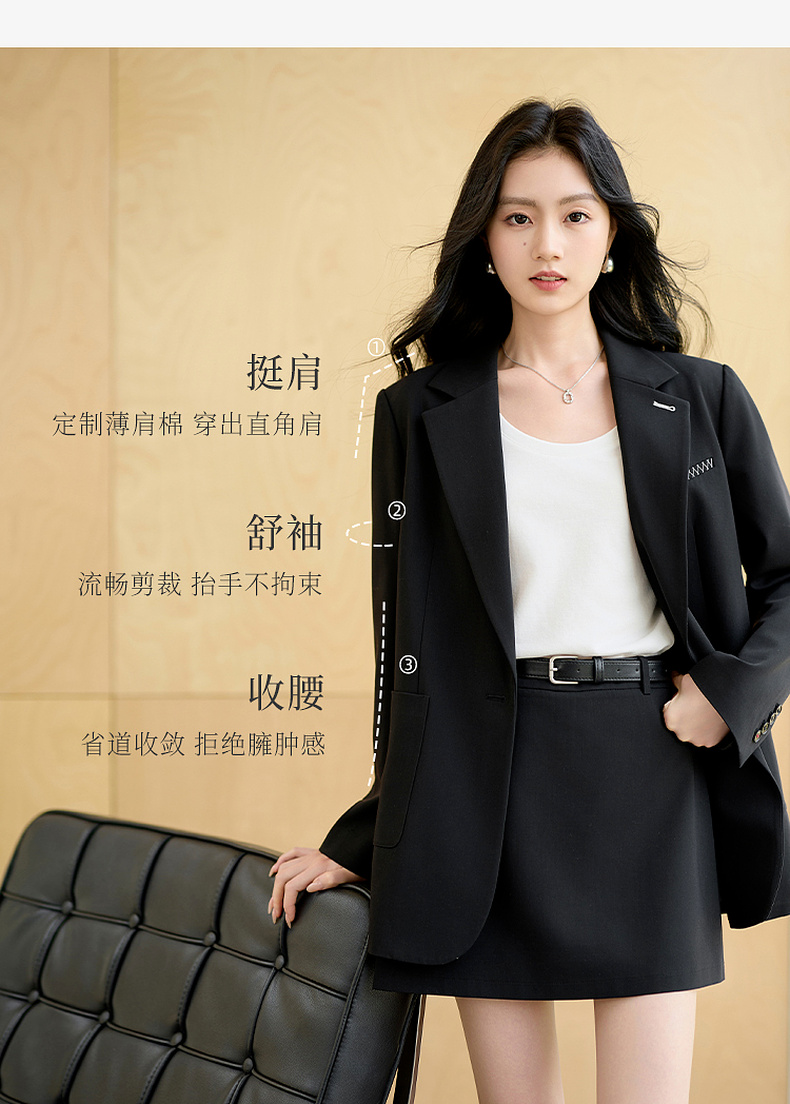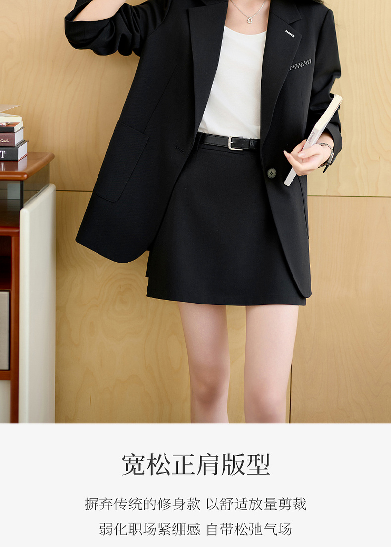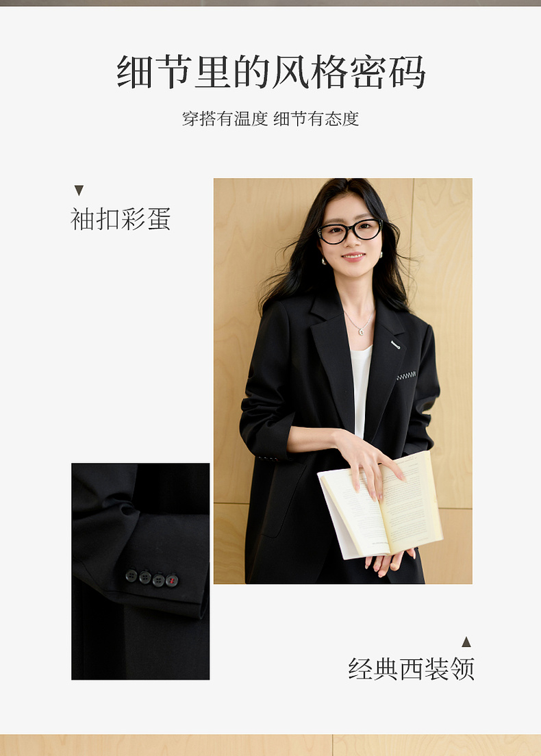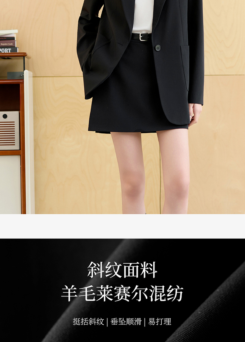 【羊毛+莱赛尔】三彩2025秋季新款休闲西装外套宽松中长款西服垫肩气质通勤S