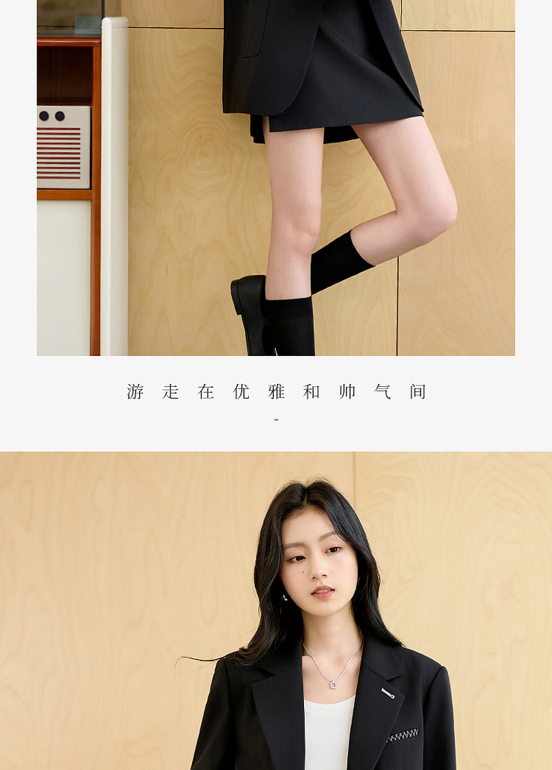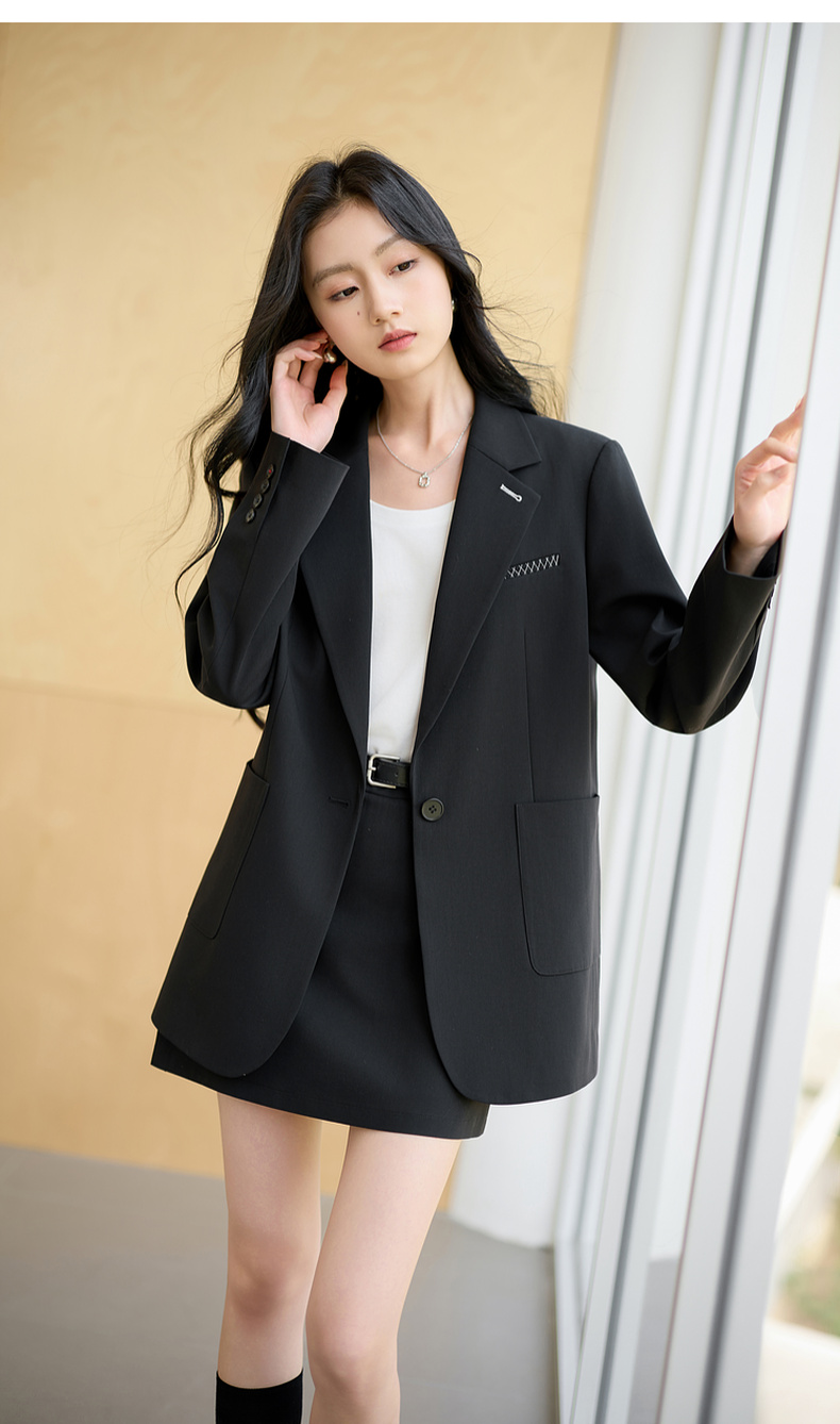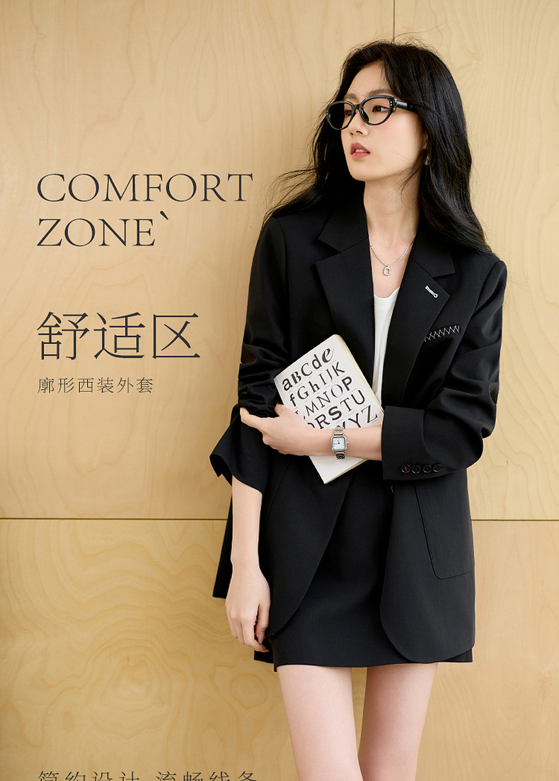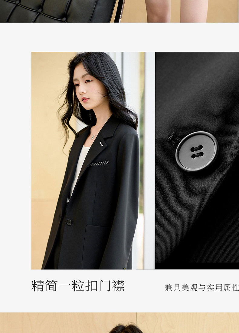 【羊毛+莱赛尔】三彩2025秋季新款休闲西装外套宽松中长款西服垫肩气质通勤S