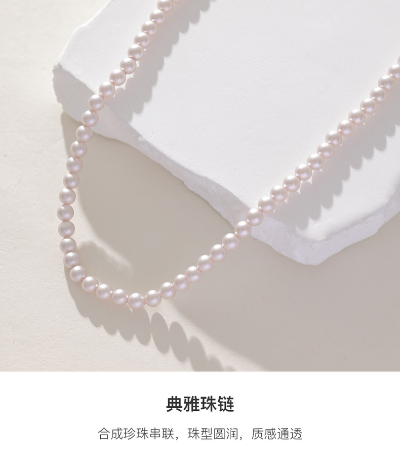 三彩2025新款简约轻奢粉韵合成珍珠项链首饰锁骨链个性气质小众
