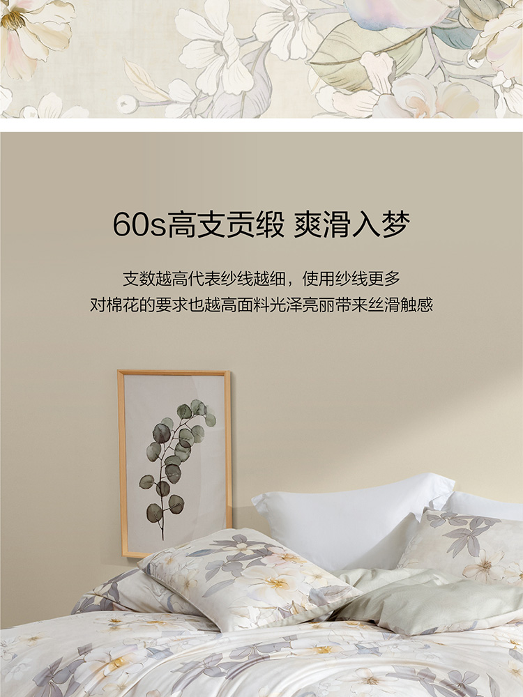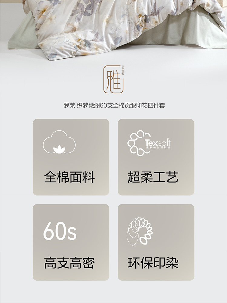 罗莱 织梦微澜60S全棉贡缎四件套