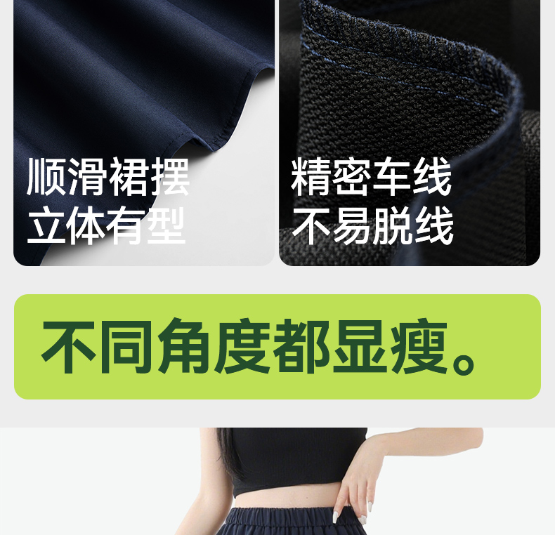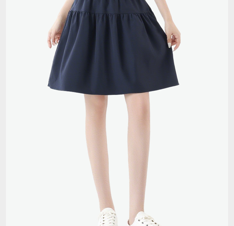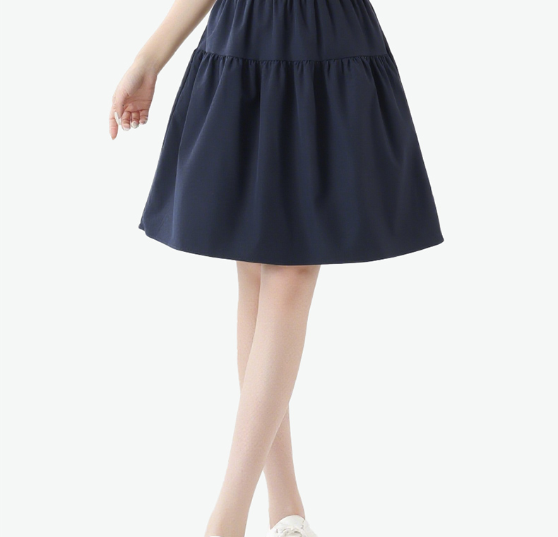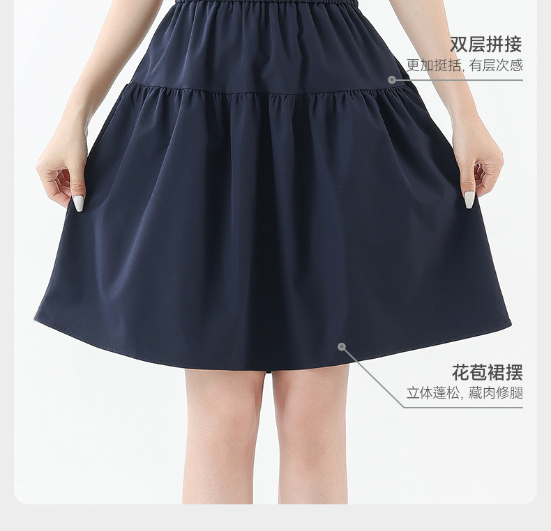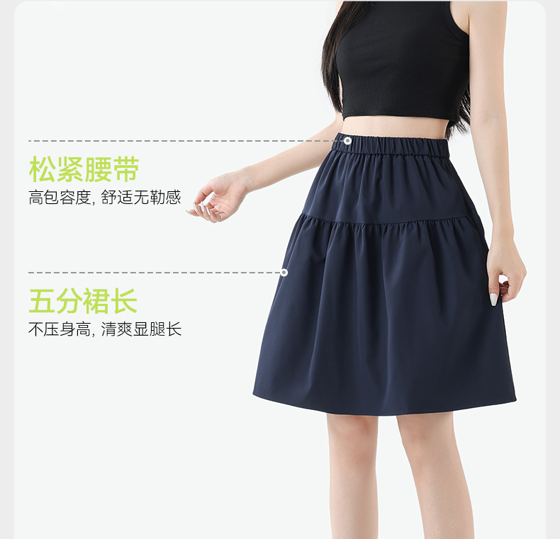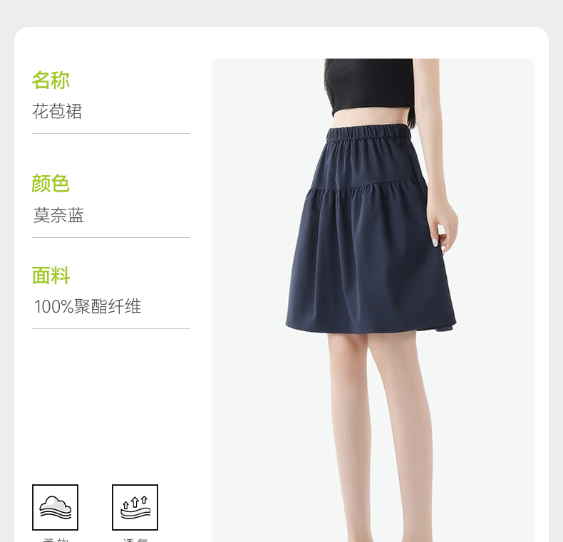 「棉的美学」藏蓝色半身裙女款夏日a字花苞短裙古早日系穿搭裙子
