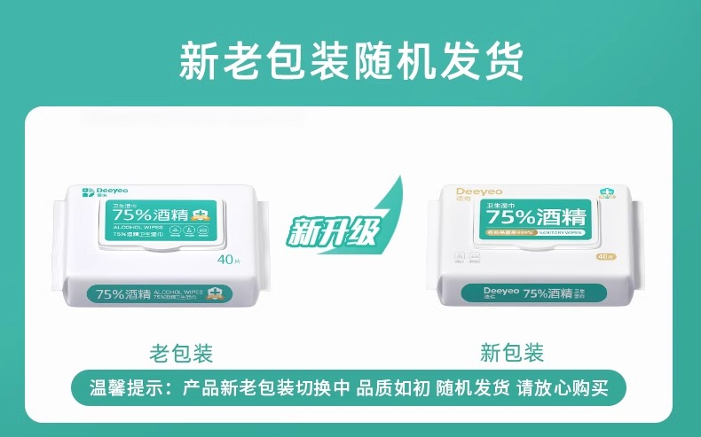 DY德佑75度酒精湿巾加厚家庭实惠大包装擦手40抽*4包/8包