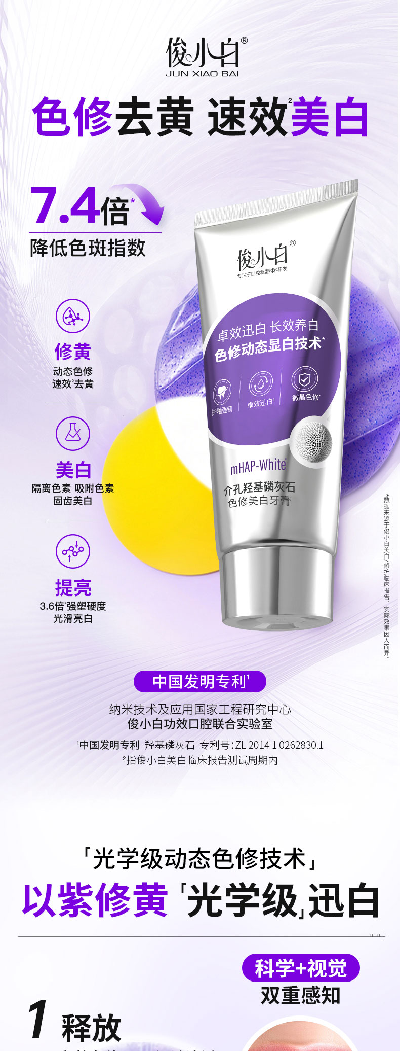 【卓越迅白 长效养白】mHAP-White介孔羟基磷灰石色修美白牙膏pb