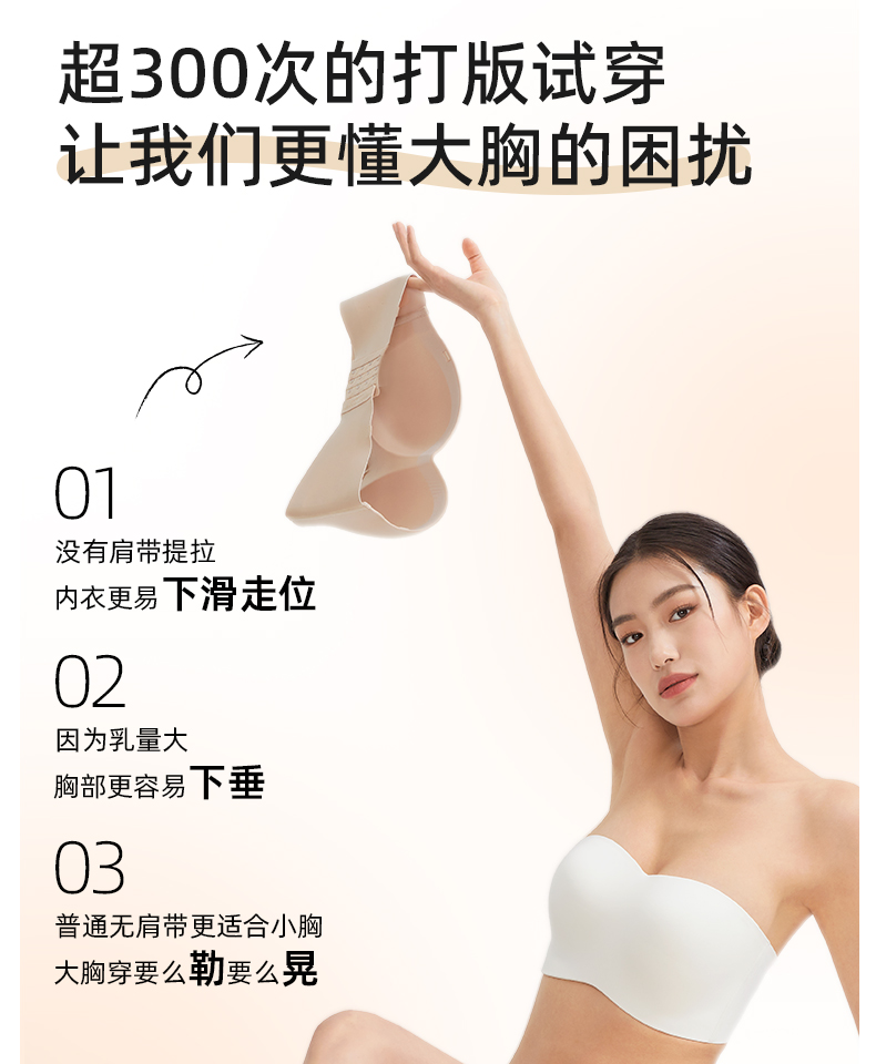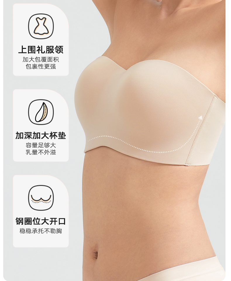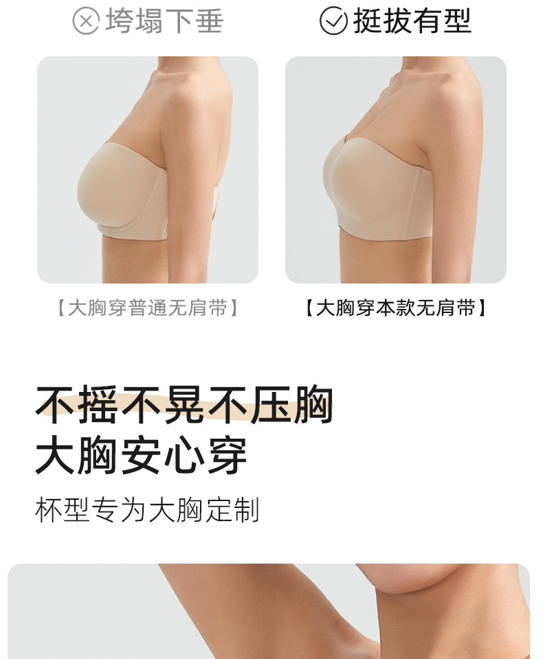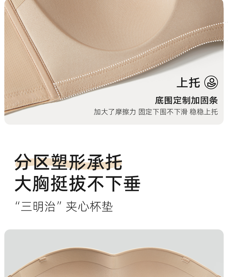 幸棉 大胸无肩带内衣女聚拢防下垂裹胸提拉无痕隐形防滑抹胸文胸女