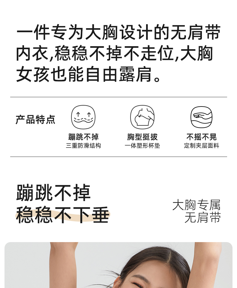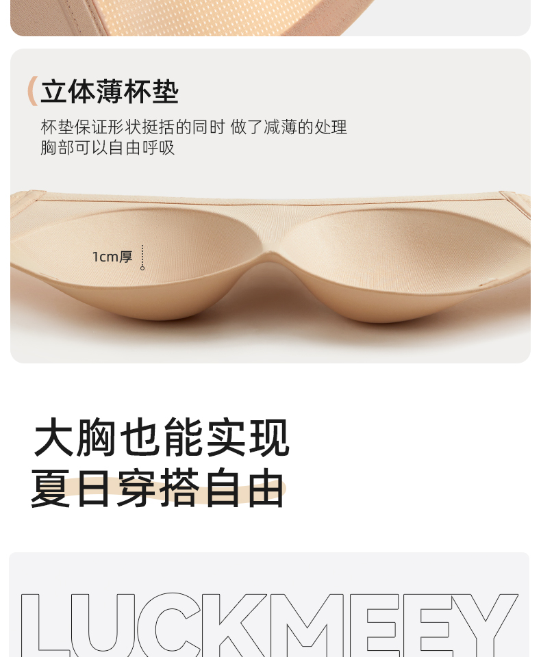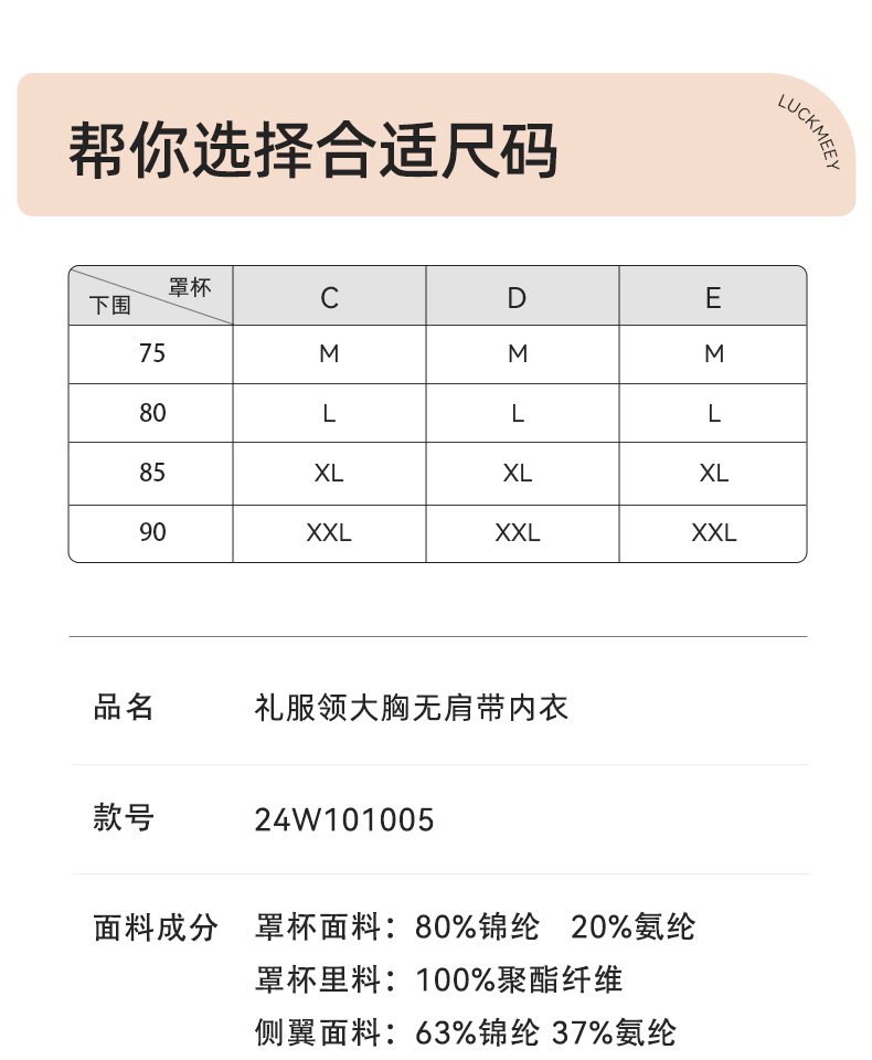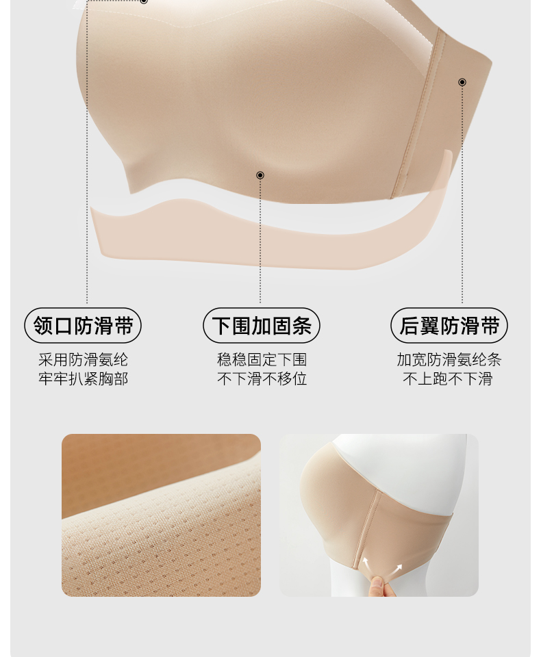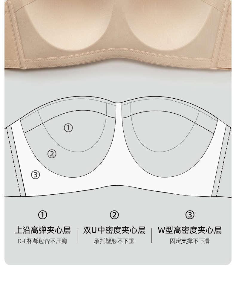 幸棉 大胸无肩带内衣女聚拢防下垂裹胸提拉无痕隐形防滑抹胸文胸女