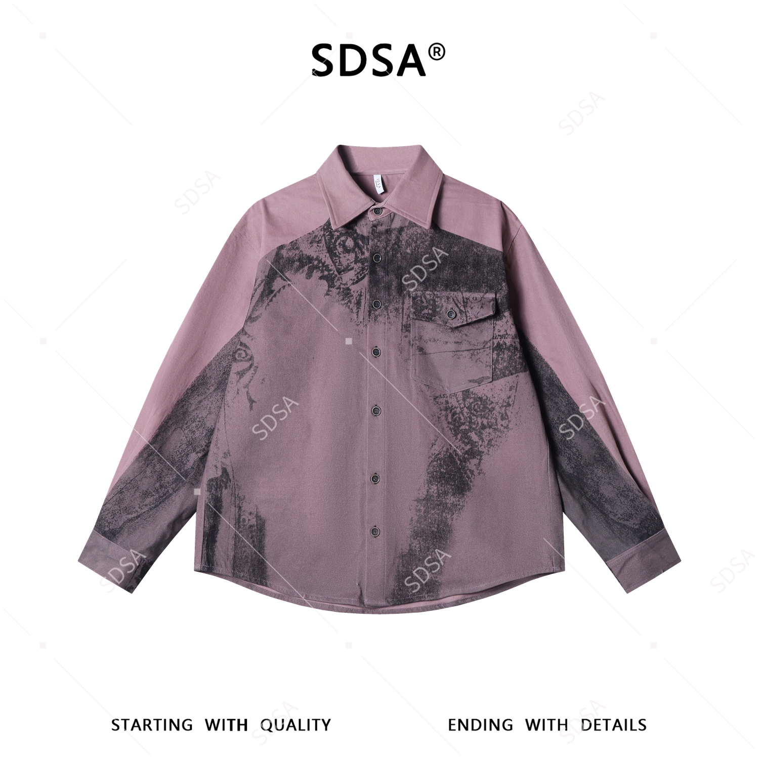 SDSA男装2026新款高贵轻奢设计师百搭撞色印花长袖衬衫百搭宽松