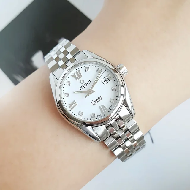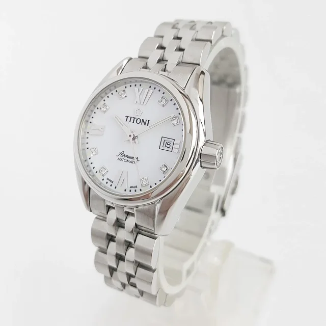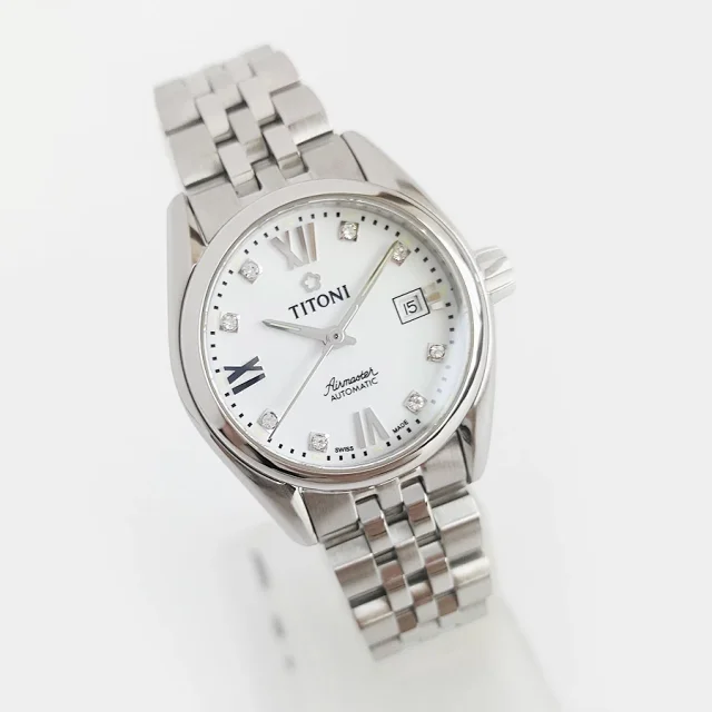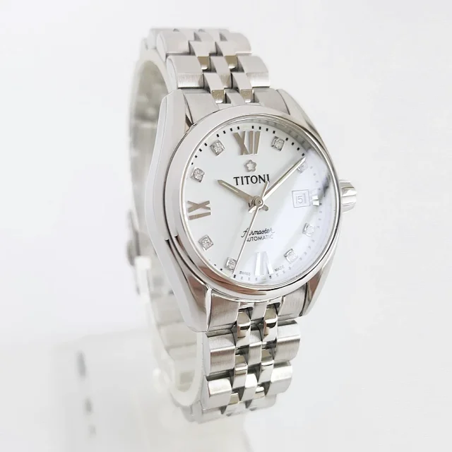 【9新正品】TITONI 梅花空中霸王系列精钢27MM日期显示自动机械机芯23909 S-063 现售价:999!160823NJS05+