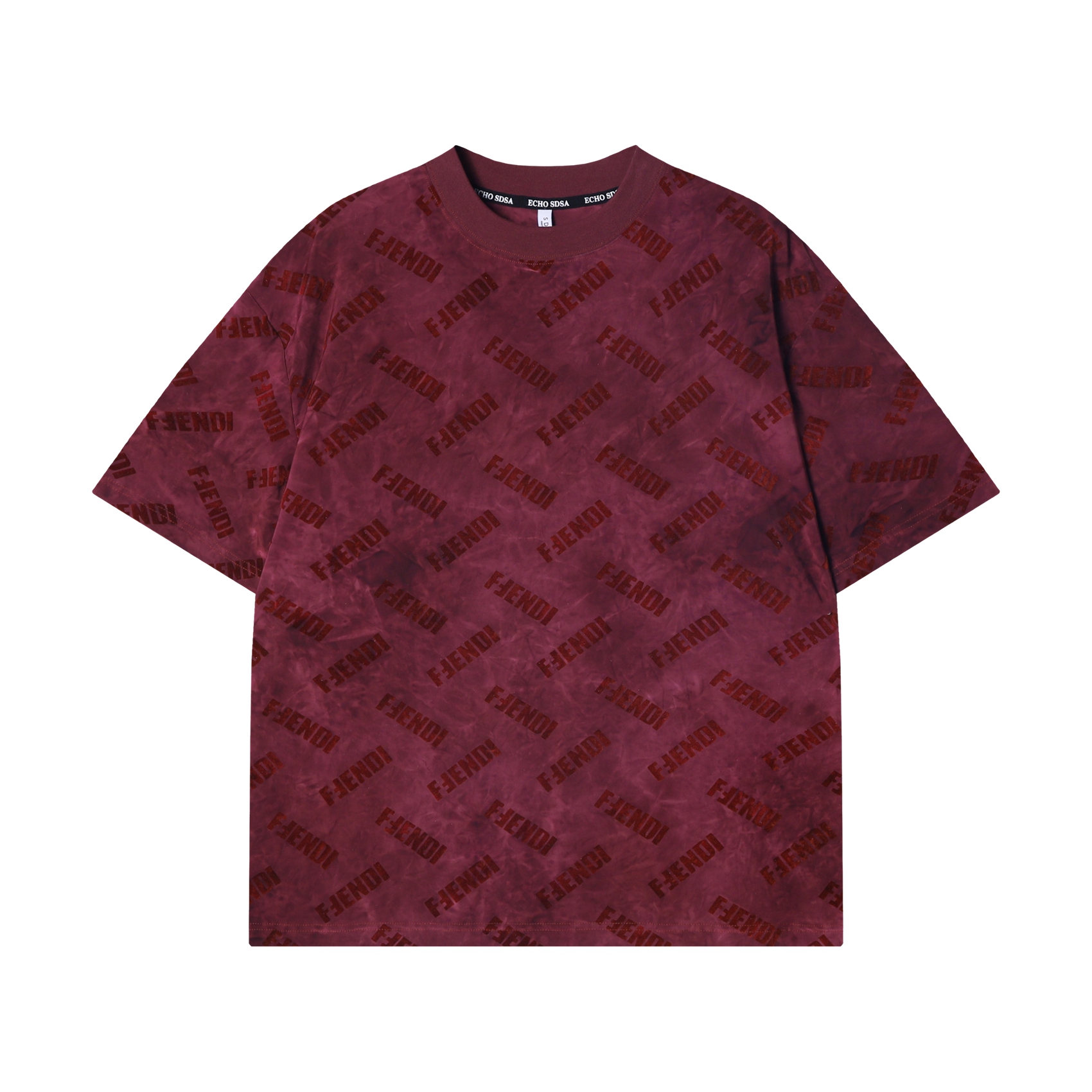 T2639夏季高级感新款扎染绒面印花字母圆领短袖T恤宽松潮流套头上衣
