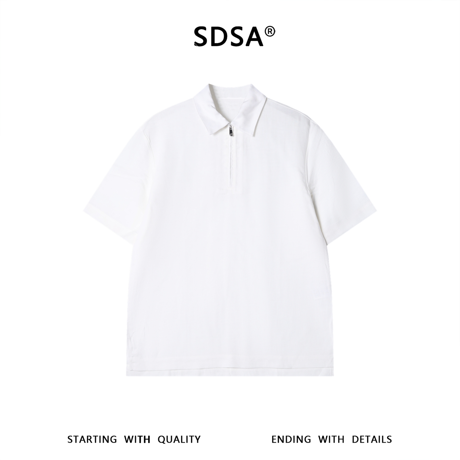 SDSA男装2026新款高贵轻奢半拉链翻领短袖Polo衫宽松休闲上衣