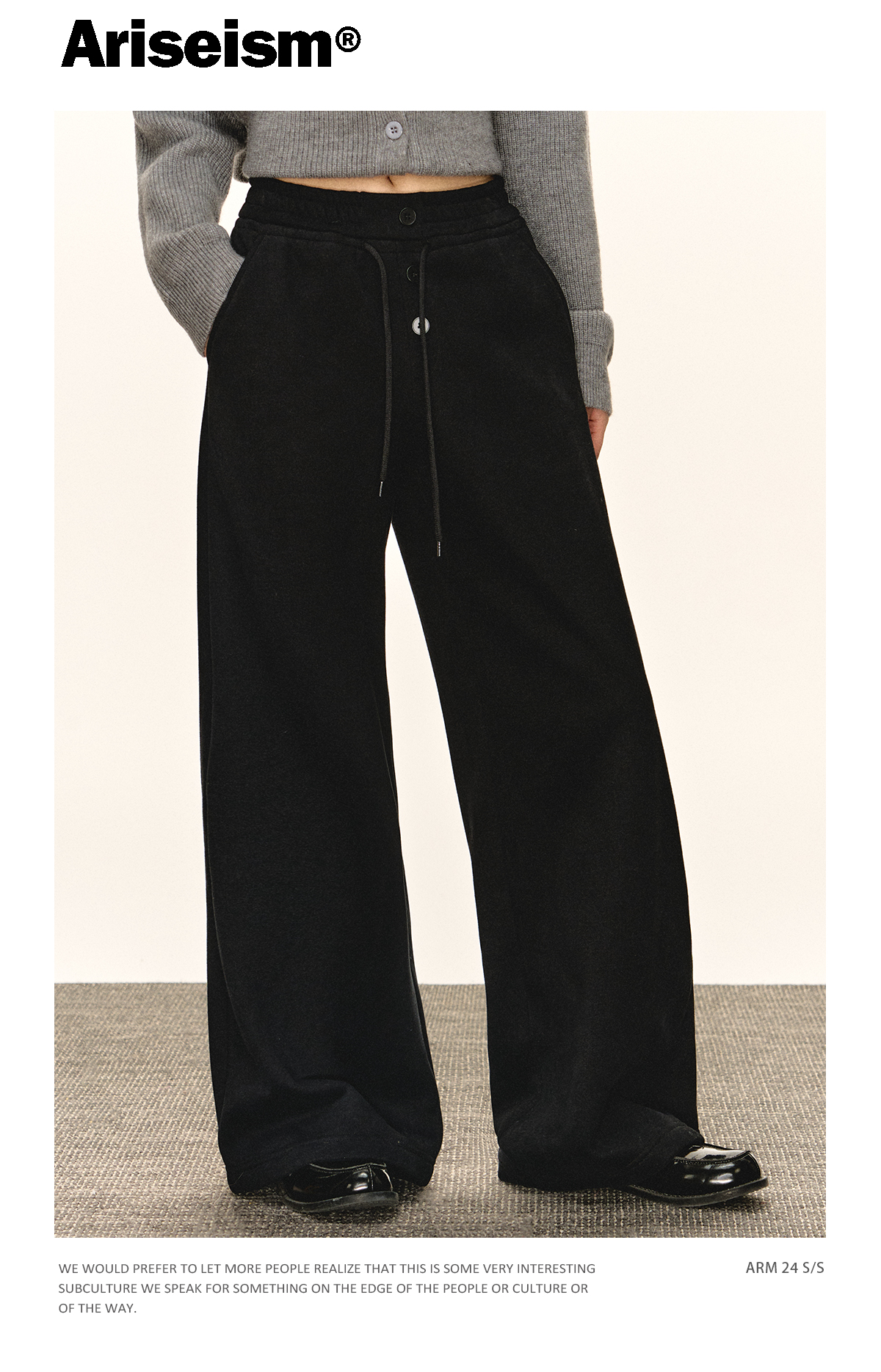 Ariseism 美式复古加绒阔腿裤女秋冬新款长裤子