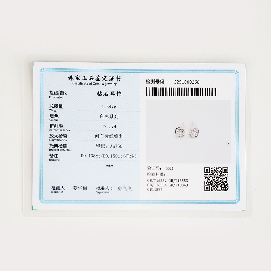 【天然正品】AU750白金简约时尚花朵造型0.138/0.150克拉钻石耳钉14.4*6.6*6.3MM(皆取最大值)081025TJ09 现售价:1880特价!
