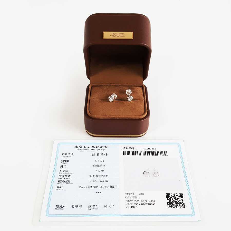 款式 | AU750白金简约时尚花朵造型0.138/0.150克拉钻石耳钉 |