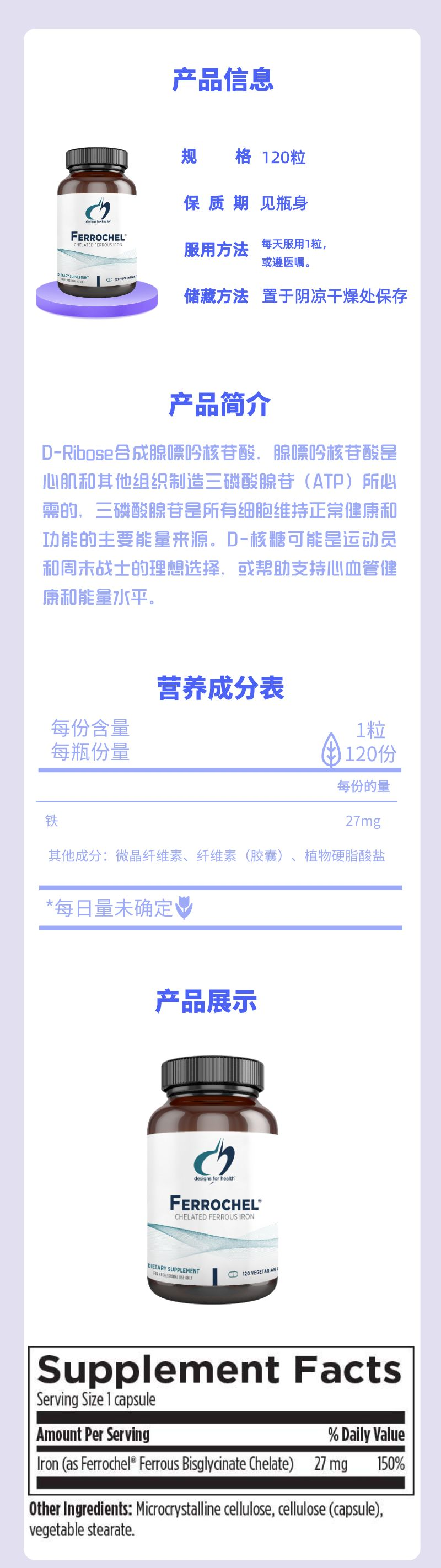 海淘 健康设计 氨基酸螯合铁 Ferrochel®Iron Chelate 120粒/瓶 11/26