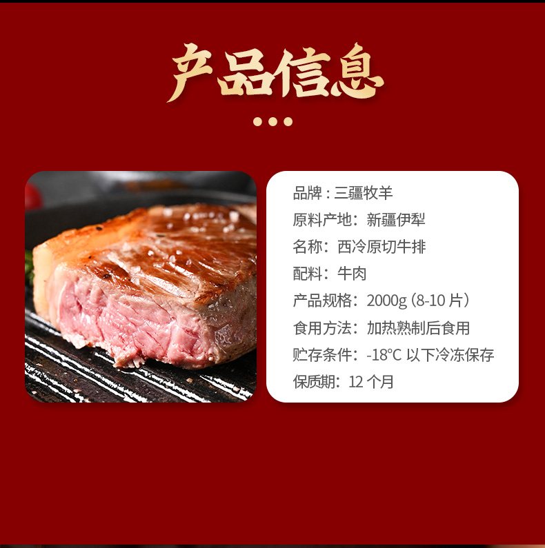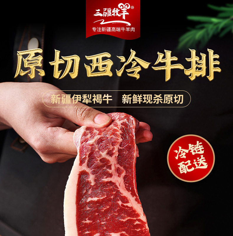 【顺丰冷链】 国产谷饲原切西冷牛排 新疆伊犁褐牛肉 新鲜原切 健身食材 未腌制未调理未拼接 ASJMY