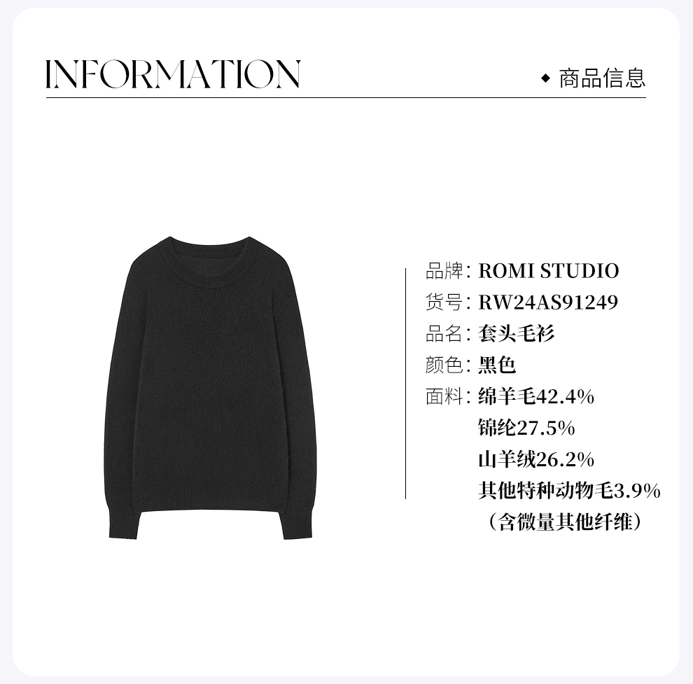 ROMI STUDIO“温暖如初”山羊绒绵羊毛混纺绒感套头毛衫RW24AS91249