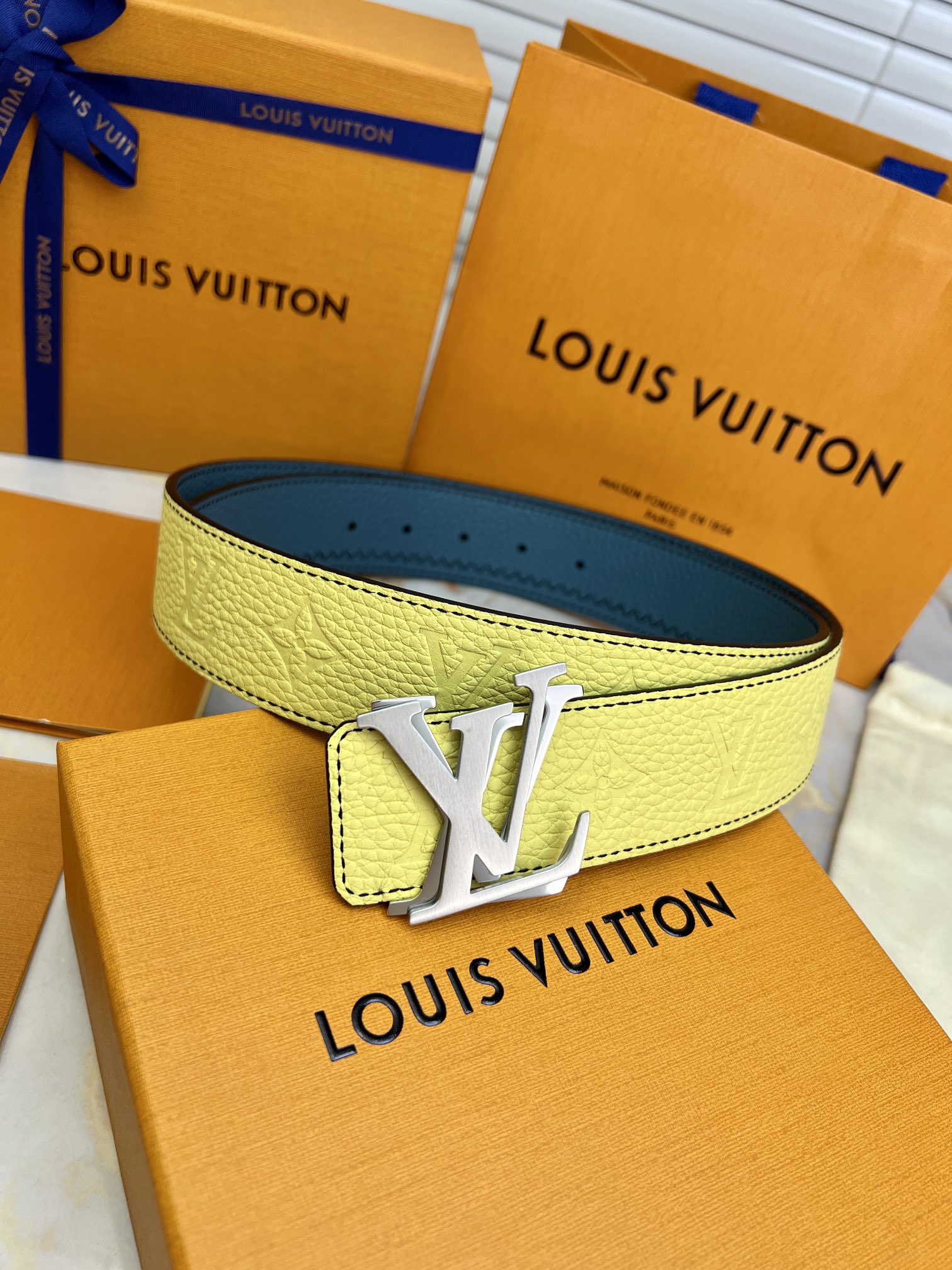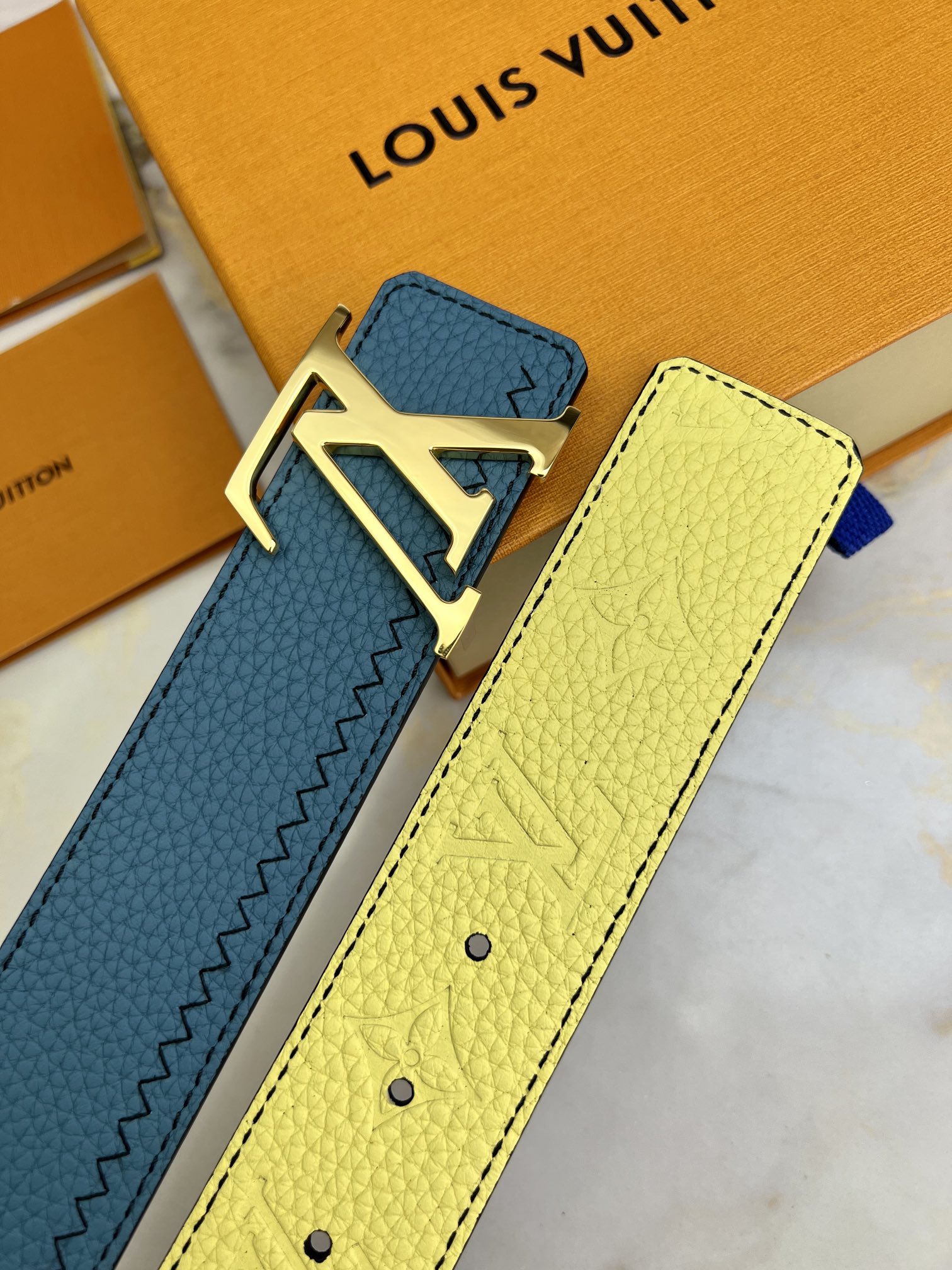 驴家 腰带💋monogram压纹小牛皮&荔枝纹小牛皮 双面穿戴 ,经典亮金扣,简单好看