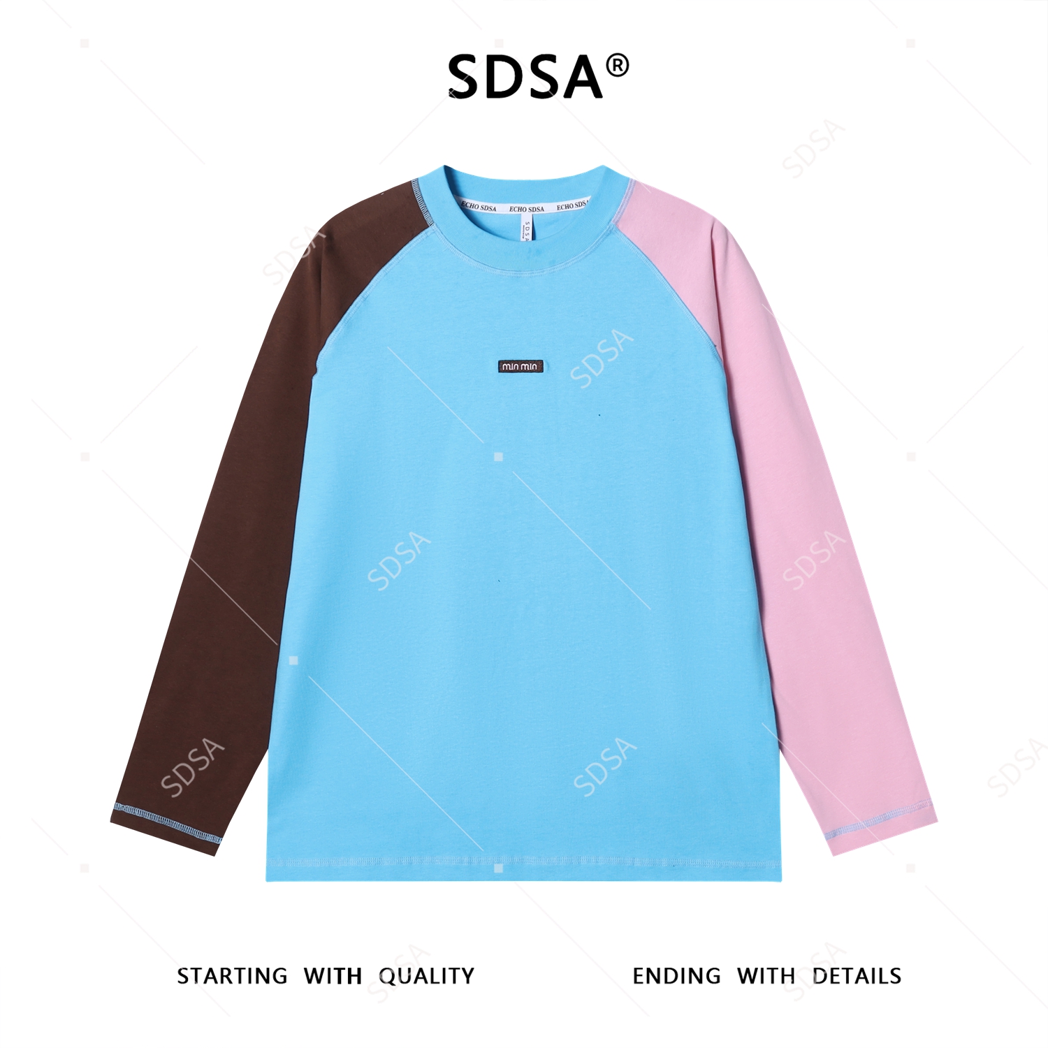 T1892秋季新款时尚个性撞色明线圆领长袖T恤简约宽松百搭上衣