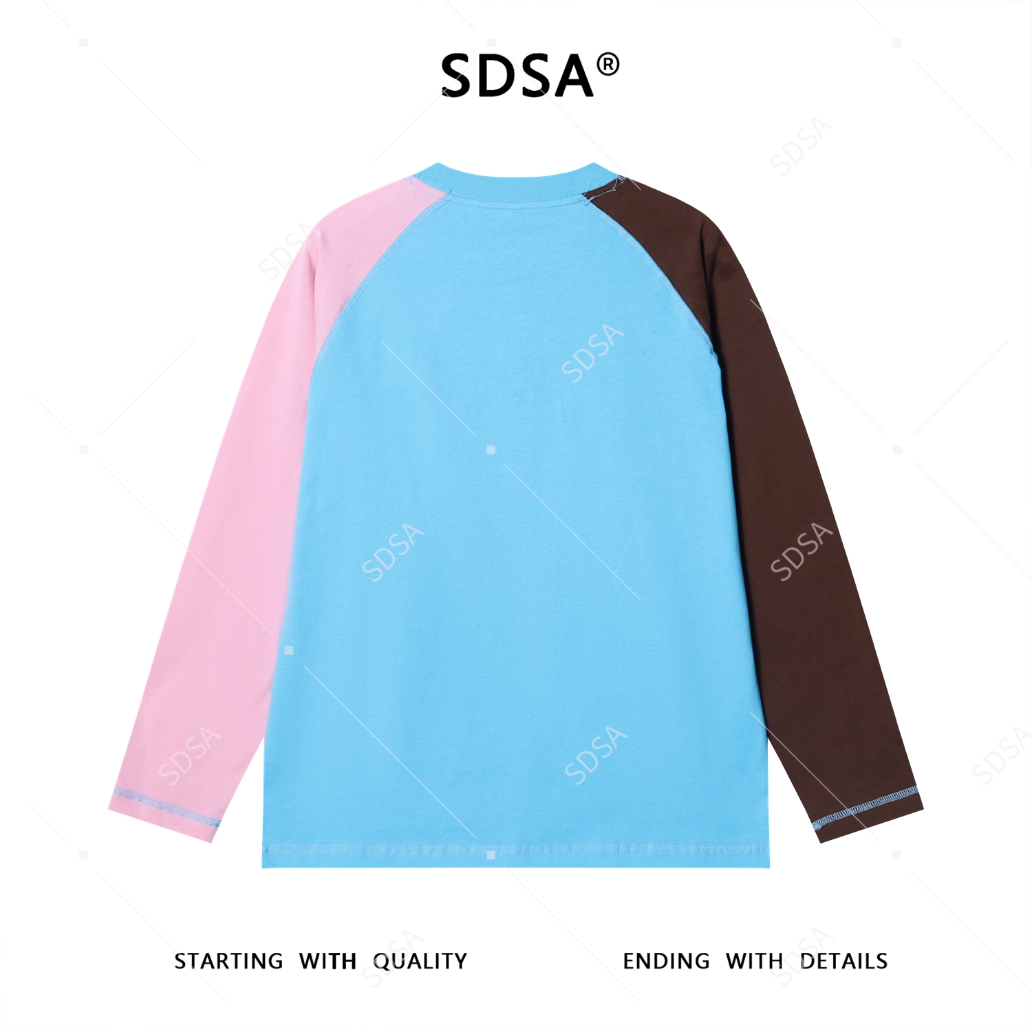 T4692SDSA男士秋冬新款痞帅男装拼色拼接圆领长袖T恤刺绣字母百搭上衣