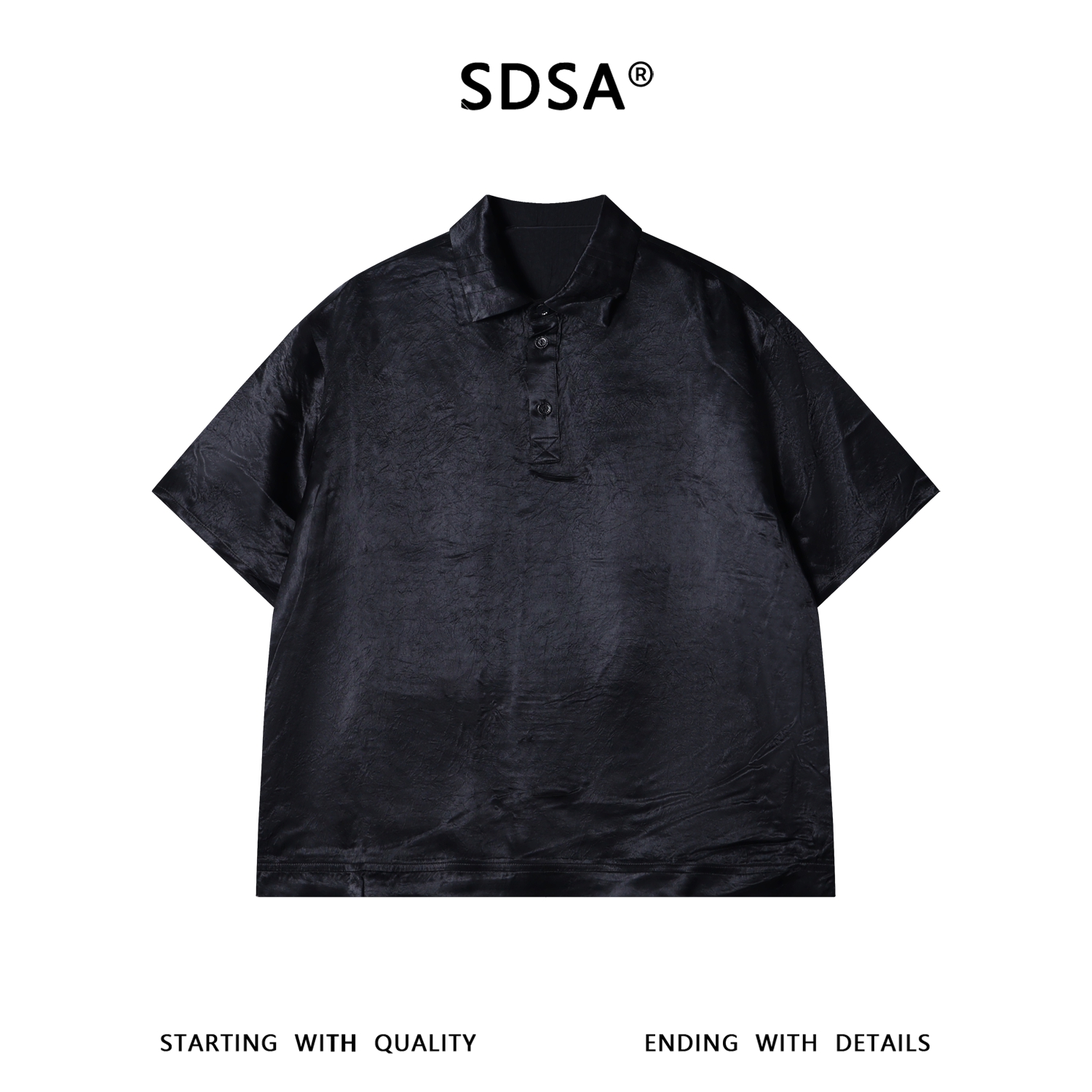 SDSA男装2026新款高贵轻奢暗纹肌理亨利领短袖Polo衫宽松休闲上衣