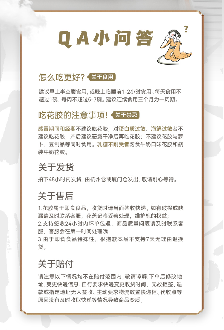 温馨提示:因食品特殊性,下单后不支持拦截、拒收、退货退款!一经下单不接受任何拦截和退换货服务。否则需要扣除运费20元,由客户自行承担。有质量问题请24小时内提供面单、产品图片反馈给客服。一旦下单代表接受~