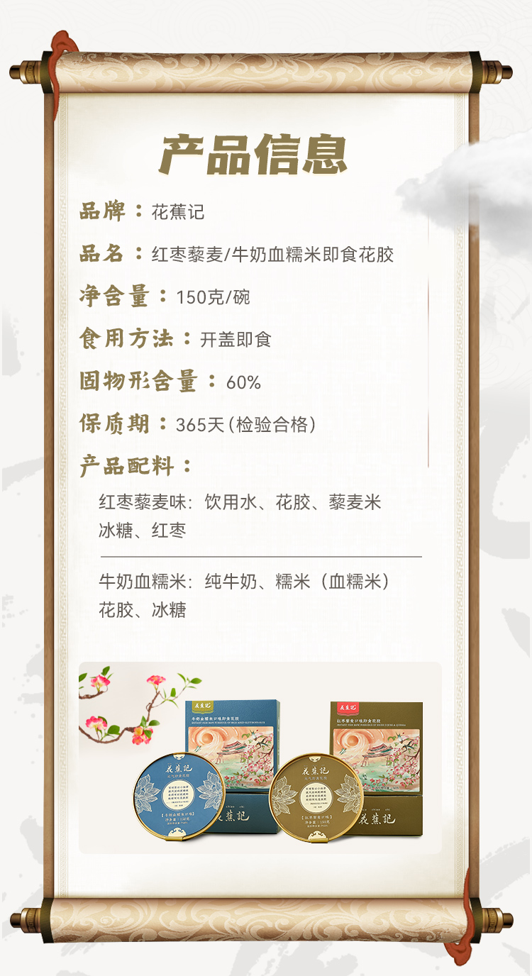 花蕉记双口味150克*6碗(3碗/口味) 即食花胶 滋补胶原蛋白营养品鱼胶