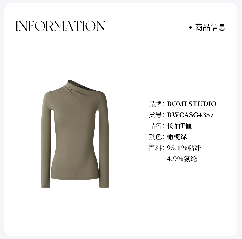 ROMI STUDIO“气质优雅”纺织肌理感不对称斜肩长袖T恤 RWCASG4357