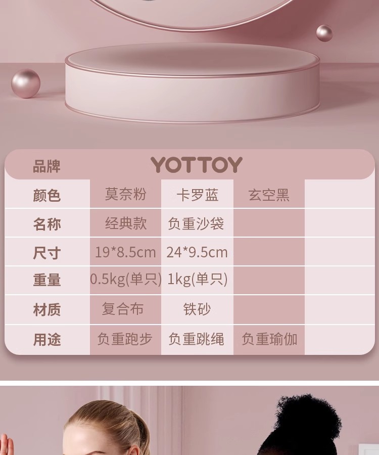 沙袋【YOTTOY】沙袋负重手环绑腿部跑步装备儿童学生运动跳舞蹈康复专用训练沙包