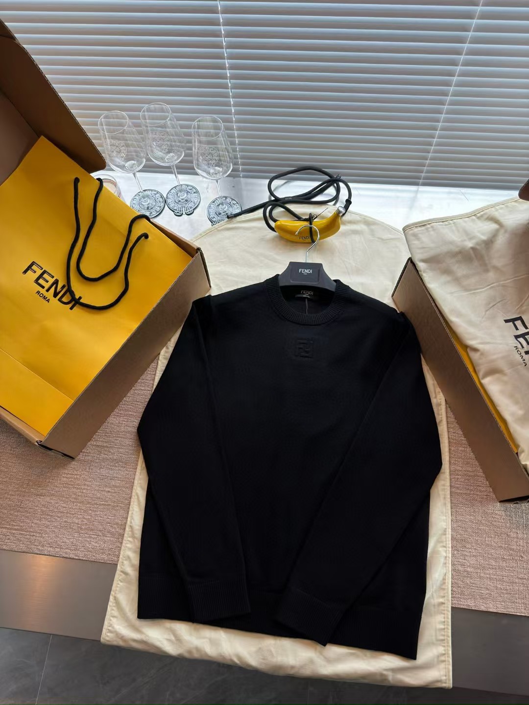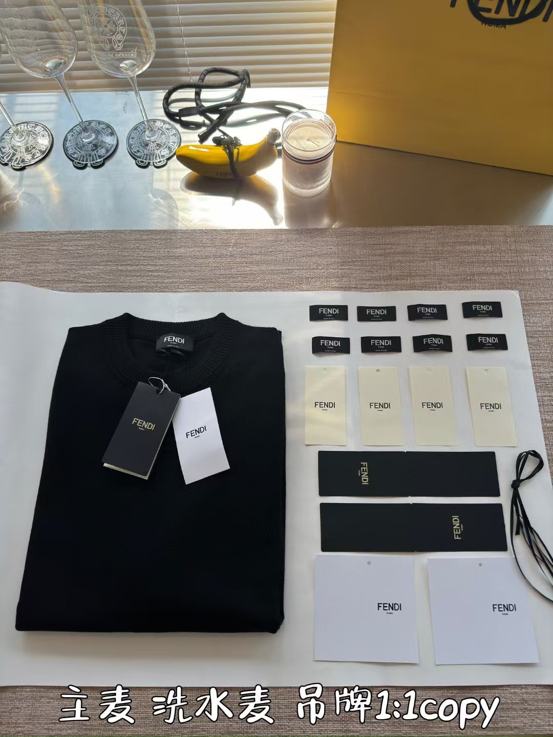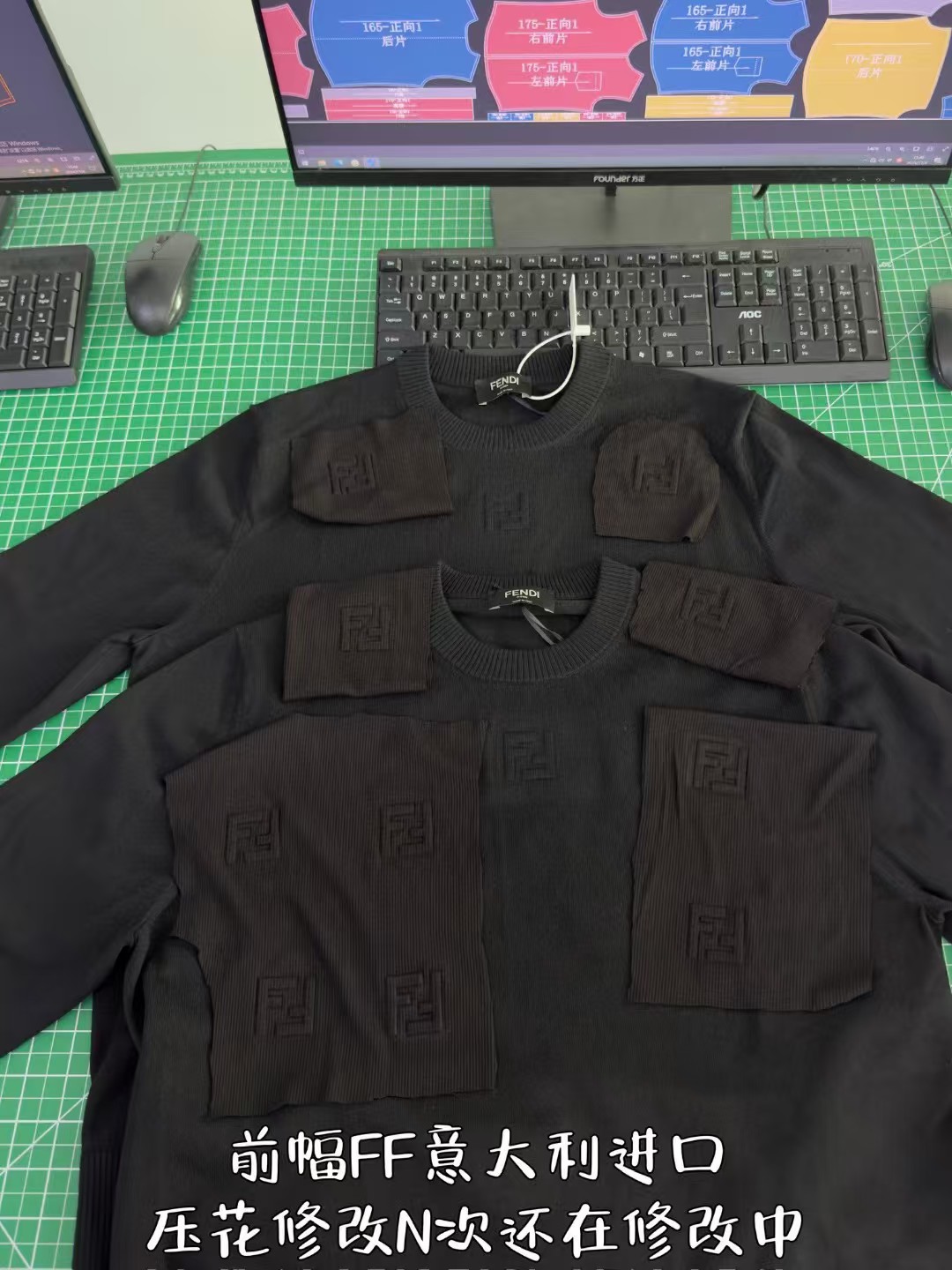 Fendi芬迪 FF压花工艺套头衫✌️整件衣服7700采购原版,定织定染特殊羊毛混纺,凹凸压花工艺,开模定制主麦,手感舒适度做到一致,真正做到1:1copy 闭眼入 码数:46.48.50.52