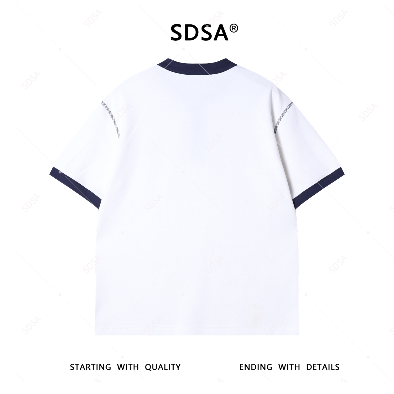 T3979夏季高级感新款男士撞色简约半纽扣刺绣标短袖T恤时尚圆领上衣潮