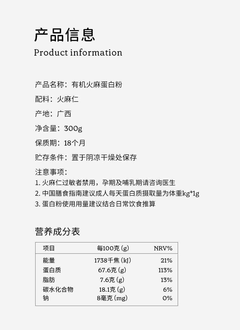 有机纯火麻蛋白粉