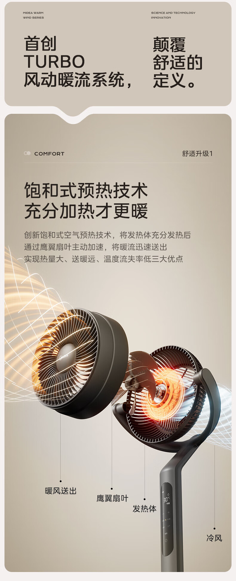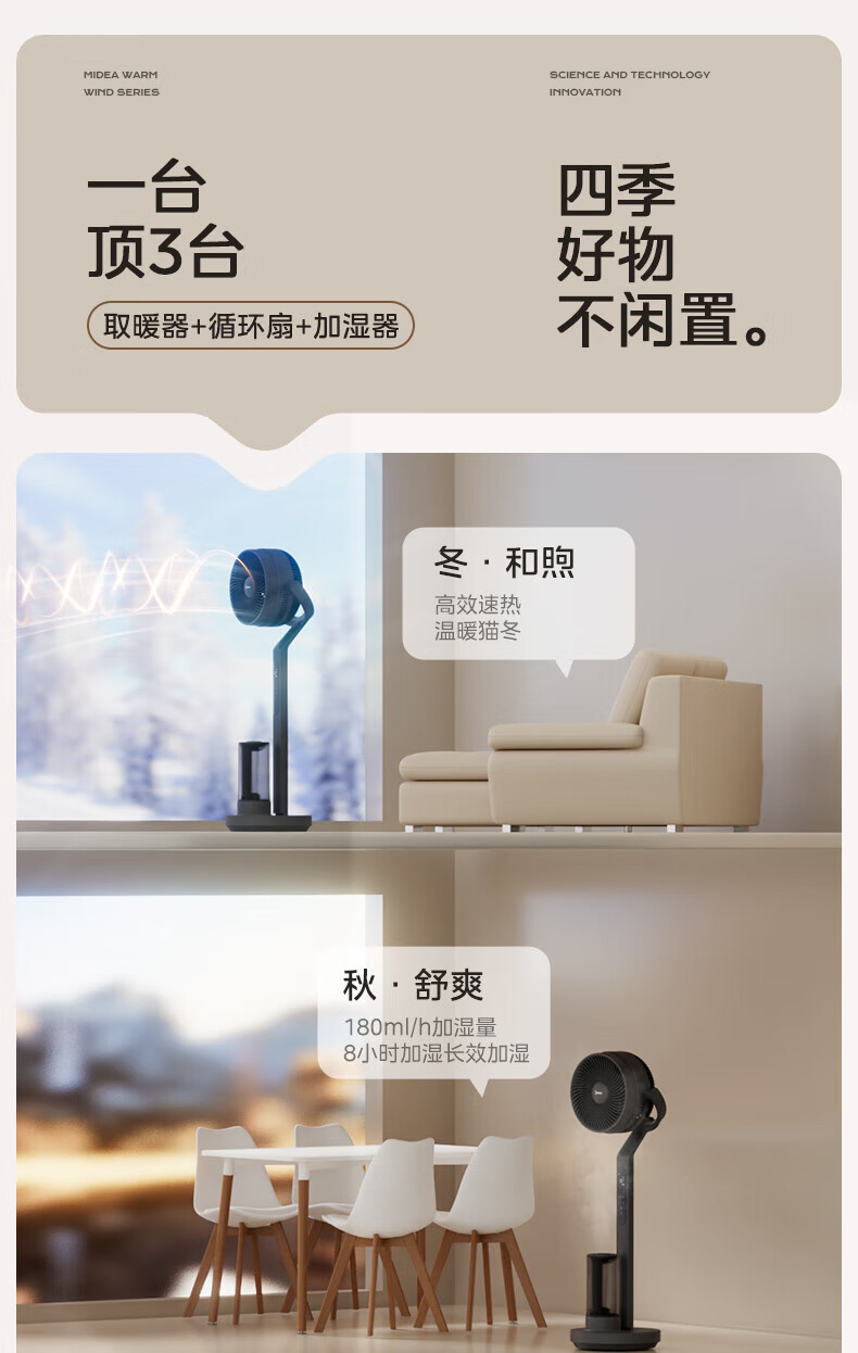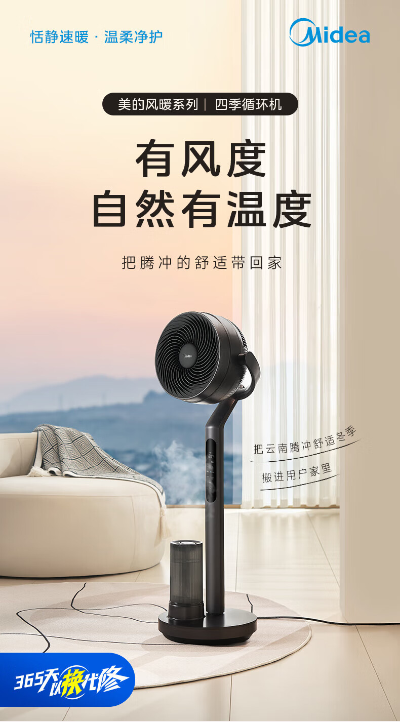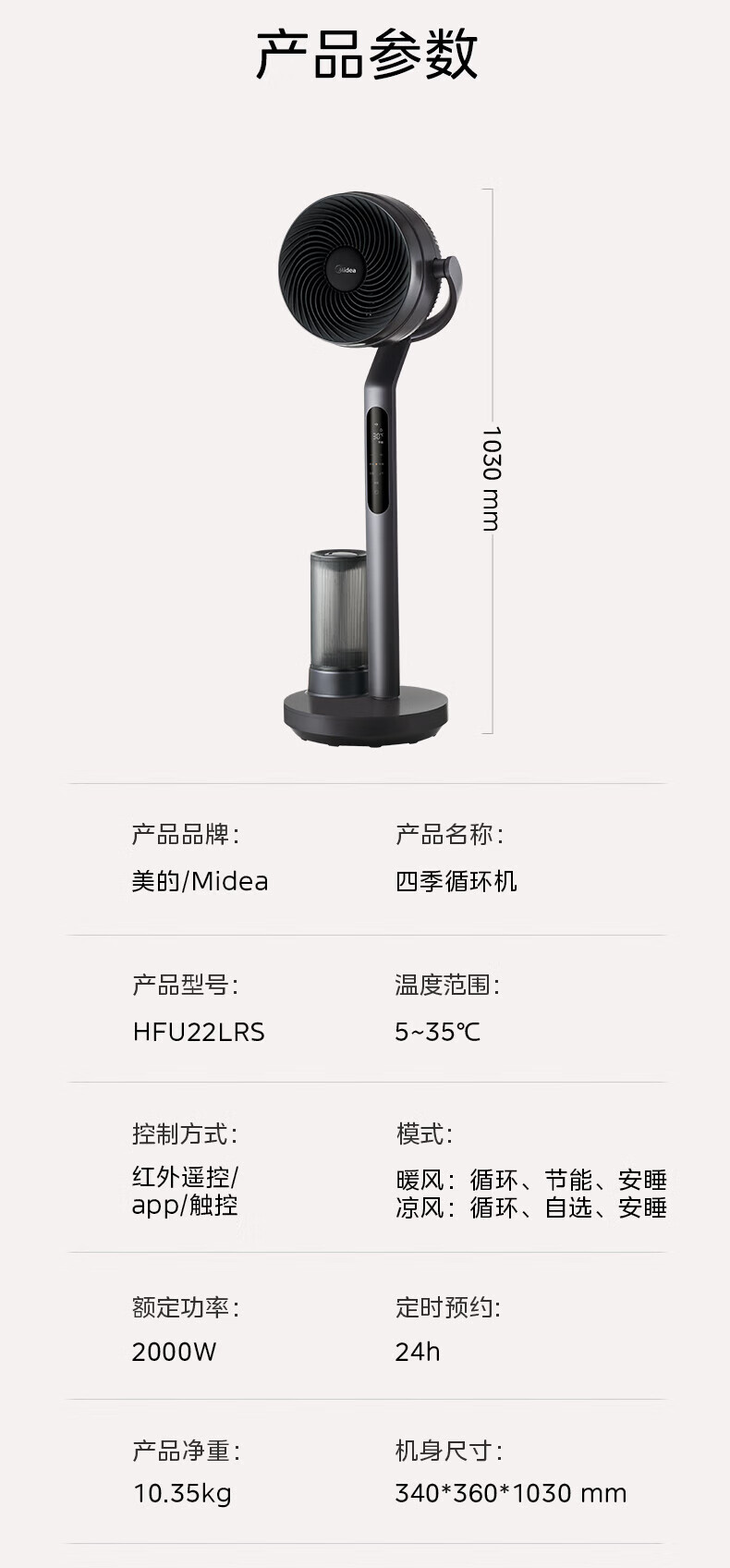 美的风暖四季循环机暖风机循环扇加湿三合一降低垂直温差体感更舒服HFU22LRS遥控wifi智能定时