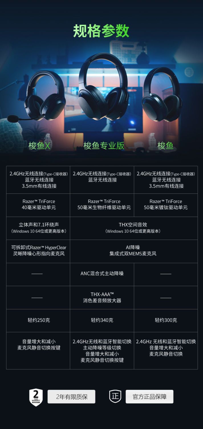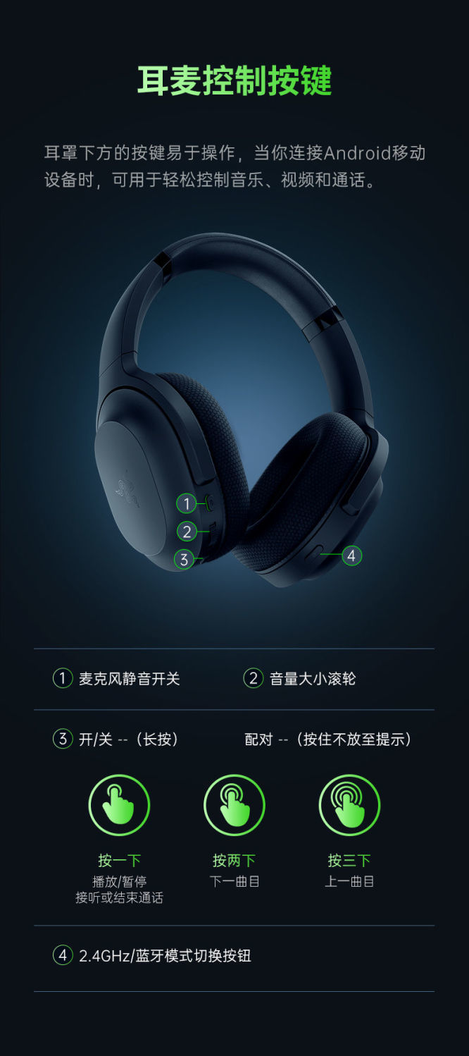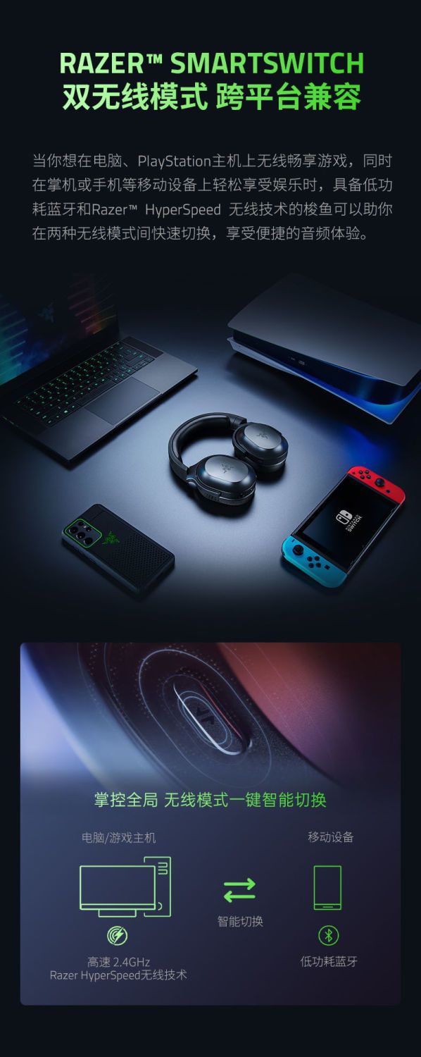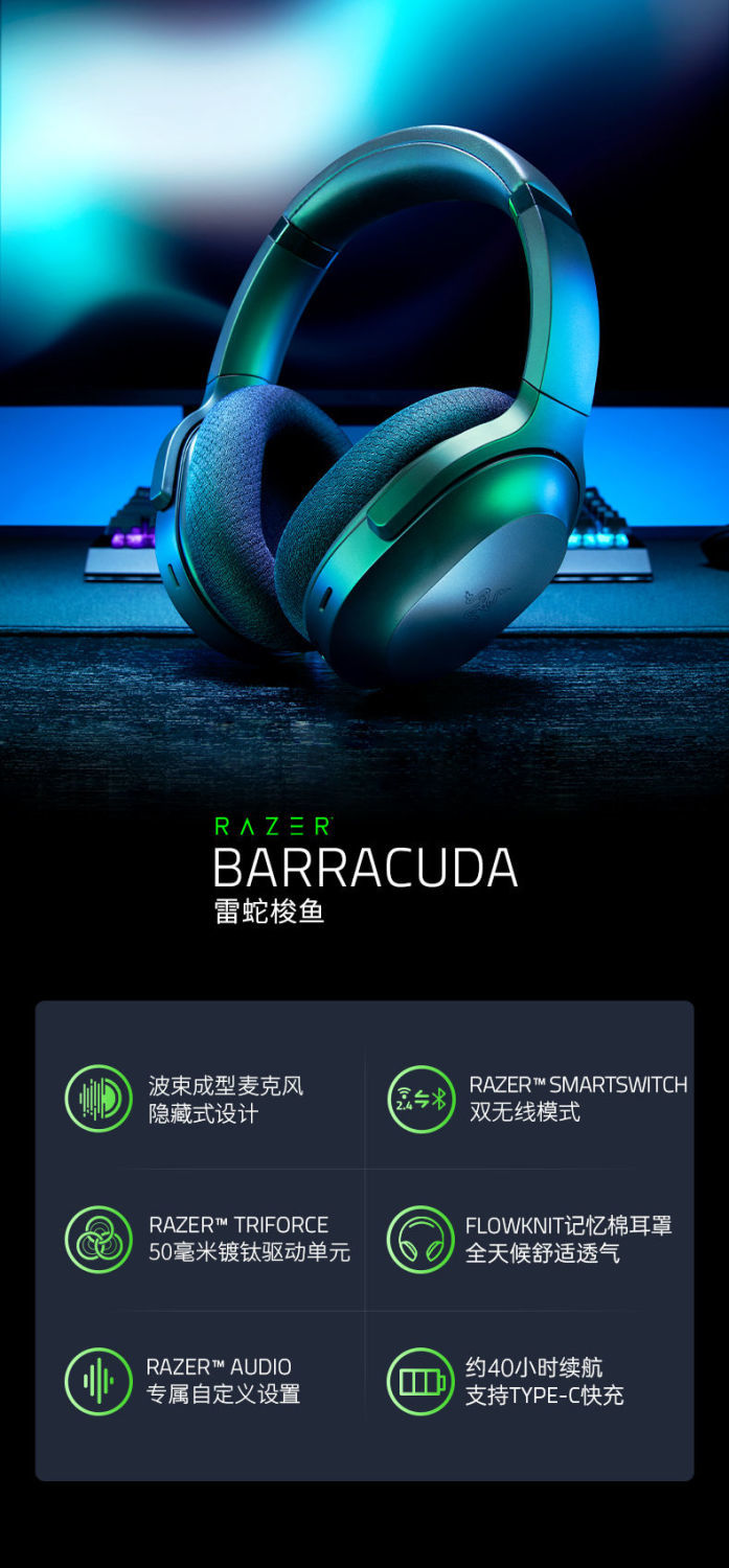 Razer雷蛇梭鱼无线蓝牙耳机【雷蛇官方直营,3年有限质保】