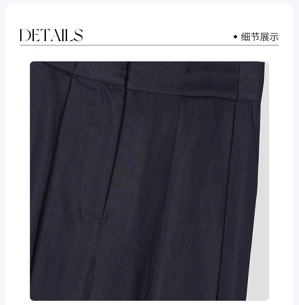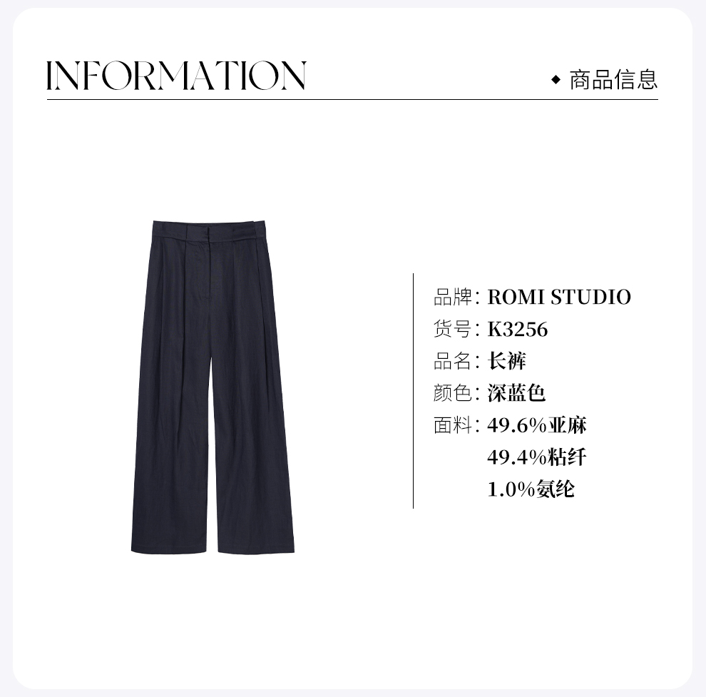 ROMI STUDIO“法式优雅”气质高腰阔腿垂坠感休闲藏蓝色西裤K3256-1