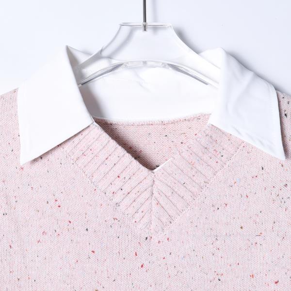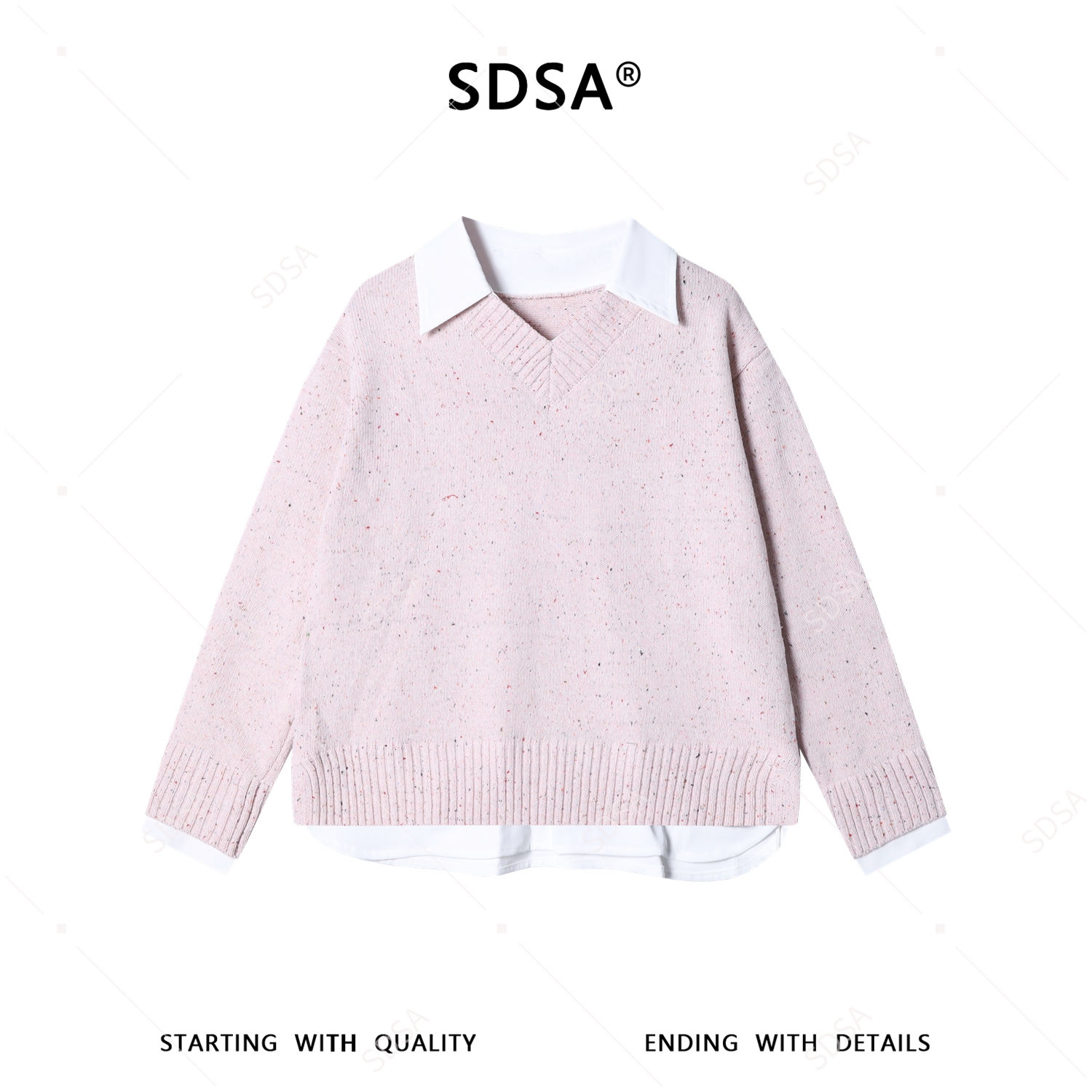SDSA男装2026新款日系针织上衣杂点工艺衬衫领拼接宽松针织衫