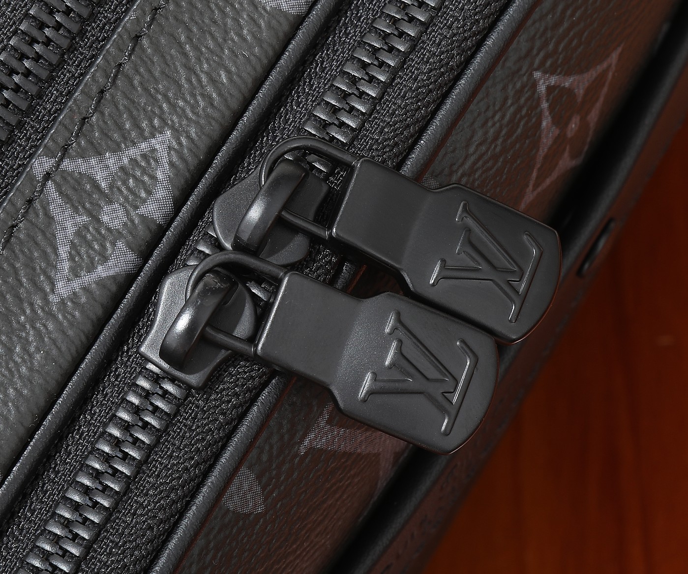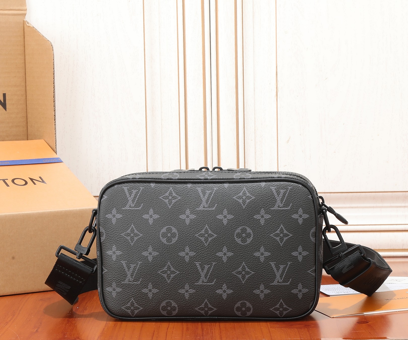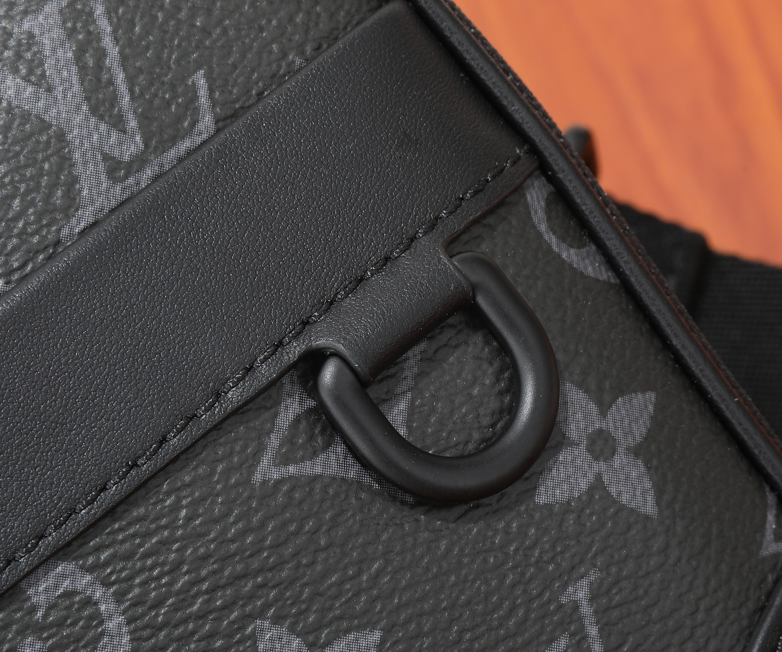 原版开发,全钢五金👏👏 本款 Alpha 邮差包取材 Monogram Eclipse 帆布,以摩登笔触演绎玲珑构型。拉链隔层确保物品安全无虞,前袋铆钉再添品牌印记。Monogram Eclipse 涂层帆布一牛皮革饰边一织物内衬一金属件一硬箱风格加固包角一铆钉一拉链隔层一前贴袋一内贴袋一正面配有 D 形环一肩带:可拆卸,可调节!!