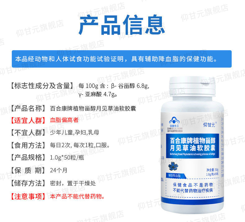 月见草油软胶囊降血脂素降调节血脂百合康牌几三素 植物甾醇