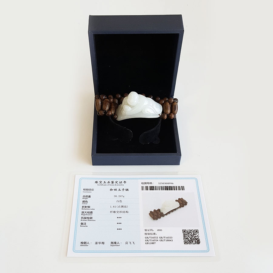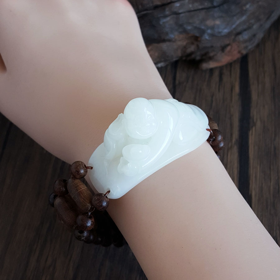 【天然正品】天然俄料细腻一级白油润度佳佛公和田玉手串49.9*22.5*20.0MM(皆取最大值)女士现售价:520特价!160325NJ28