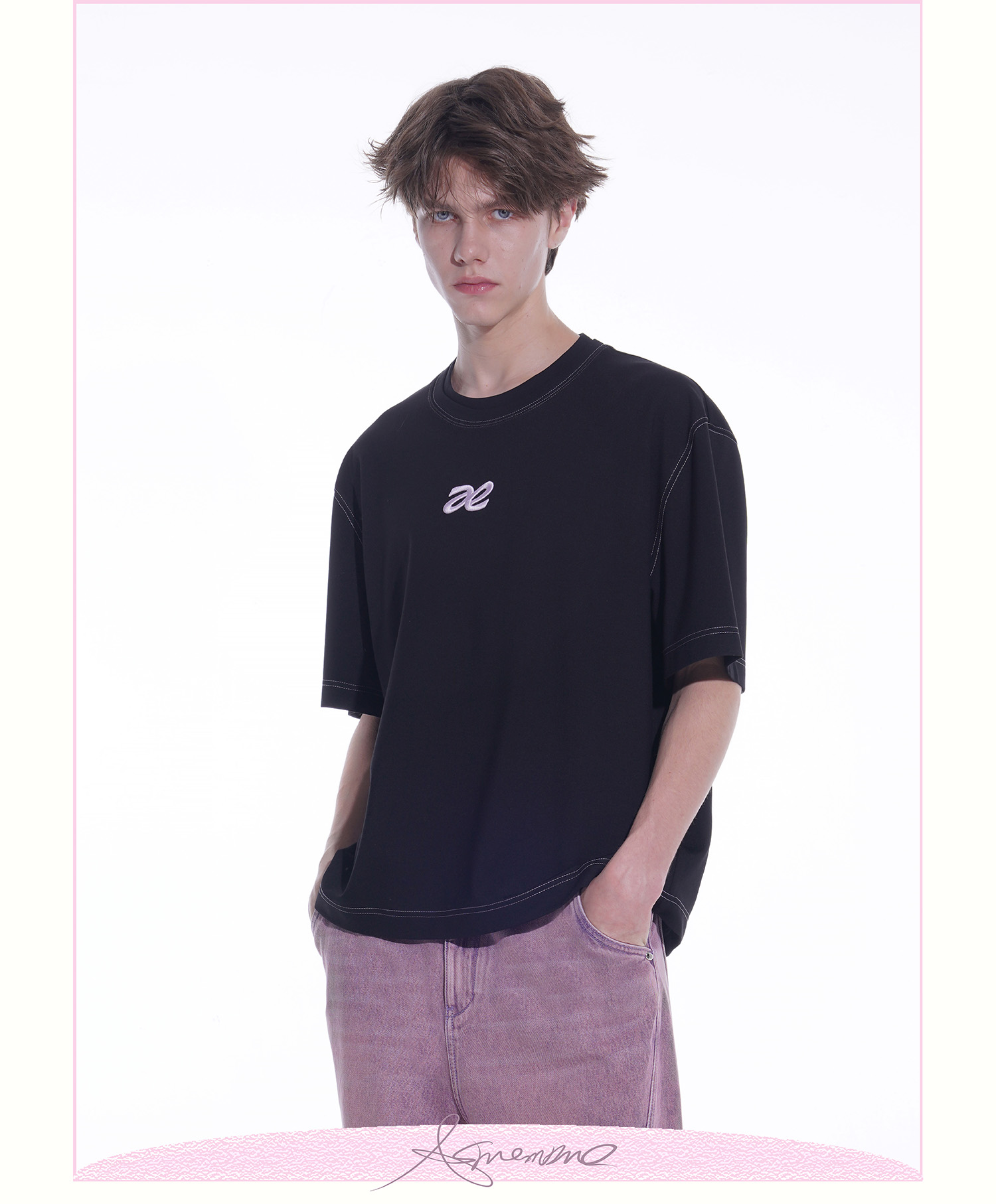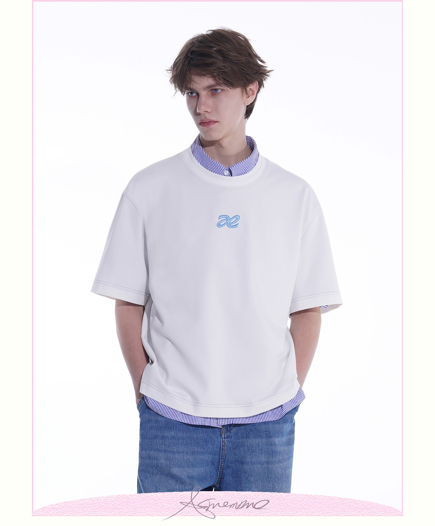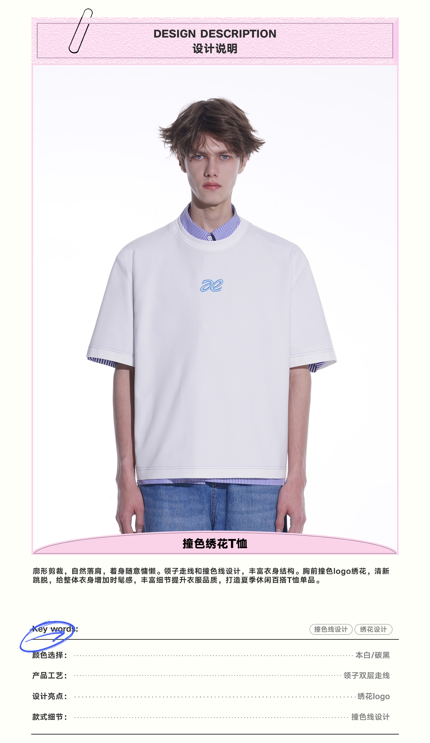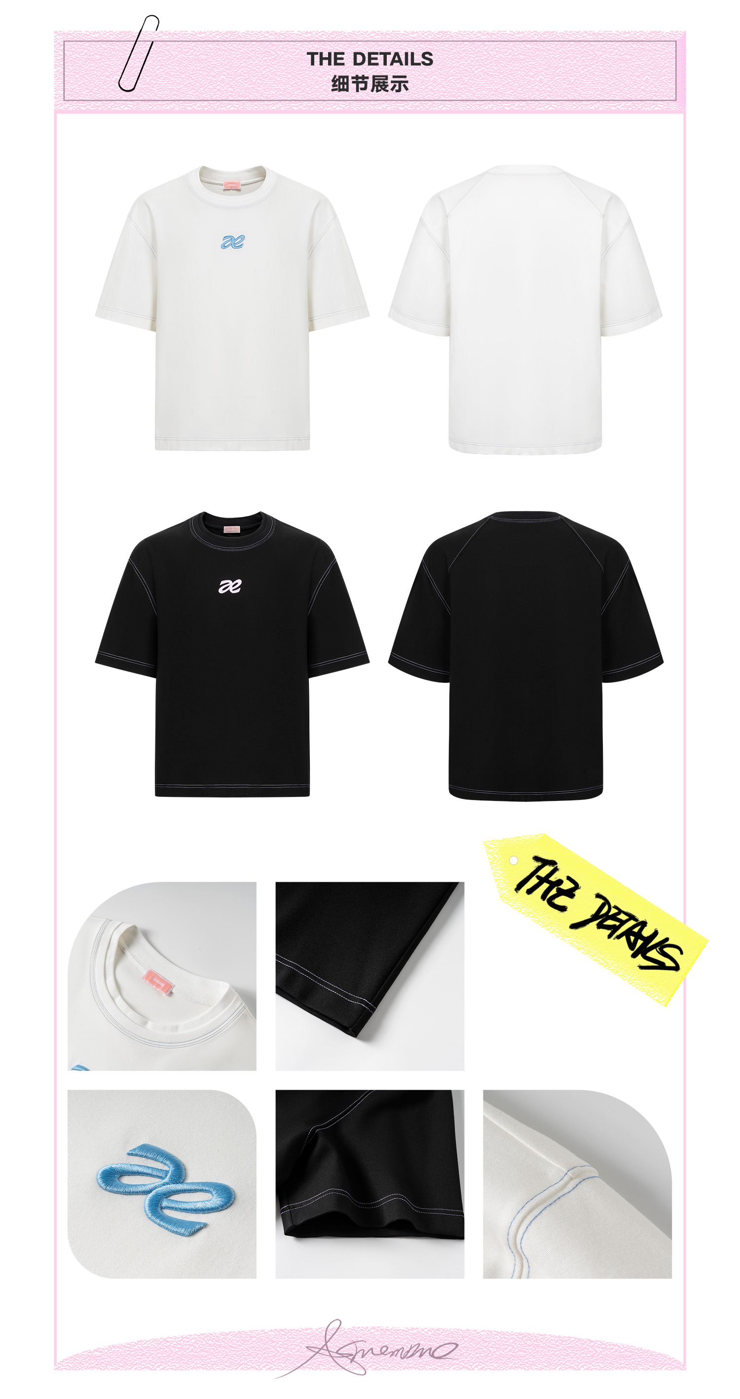 ASMEMMO咦哇•“留声唱片机”撞色绣花T恤